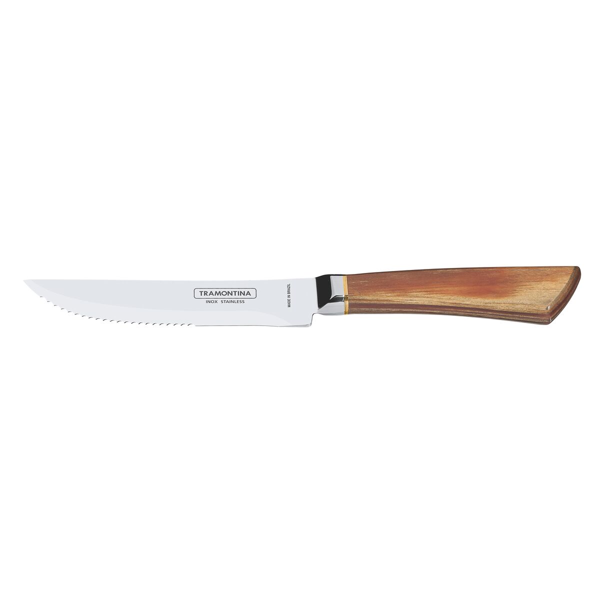 Lâmina de aço inox. Cabo de madeira tratada Polywood.
