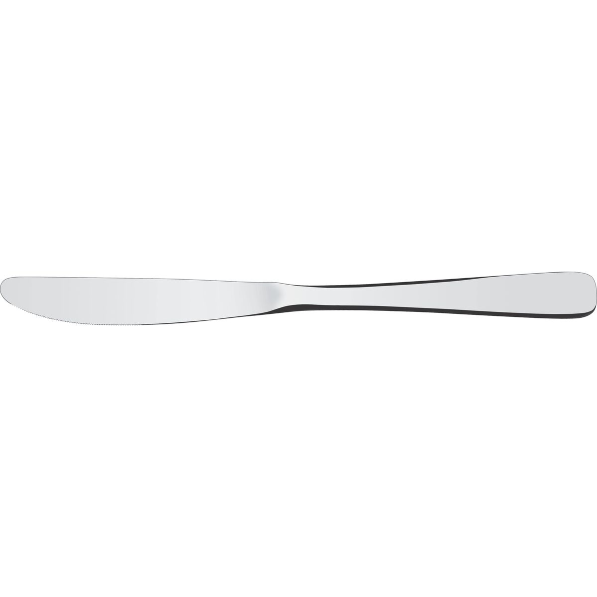 - Faca totalmente temperada, que garante maior durabilidade no fio de corte e maior resistência à corrosão, e por sua característica de temperabilidade, não risca as porcelanas. - Totalmente feita de aço inox, mantém suas características originais, preservando a beleza, a higiene e a durabilidade do material. - Acabamento em brilho, com detalhes no cabo. - Própria para uso diário combina com qualquer ambiente. - Pode ser lavada diariamente na máquina de lavar louças.