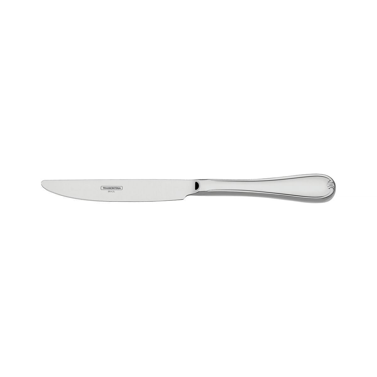 Estar atento aos detalhes na hora de compor sua mesa, faz toda a diferença para tornar suas refeições ainda mais especiais. E para encantar a todos, a Faca de Mesa Tramontina Vicenza Forjada em Aço Inox é o item perfeito! Produzida em aço inox com acabamento alto brilho e detalhes no cabo, ela é perfeita para uso diário, pois é altamente resistente e durável. Ela é muito fácil de limpar e o melhor é que você pode levar diariamente na máquina de lavar louças, sem comprometer suas características originais, mantendo assim a sua beleza e durabilidade. Use-a com liberdade, pois além da peça não riscar porcelanas, ela ainda adapta-se perfeitamente à palma da sua mão.