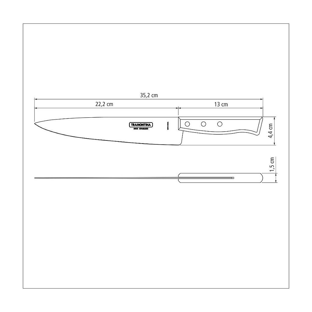 Os cabos de madeira natural com acabamento polido dão toque rústico à Linha Tradicional. Os talheres podem ser levados à mesa nas refeições do dia a dia e também em ambientações bucólicas. As facas têm fio de grande durabilidade, pois recebem tratamento térmico. O formato das lâminas e a espessura do aço oferecem maior resistência e tempo de utilização.