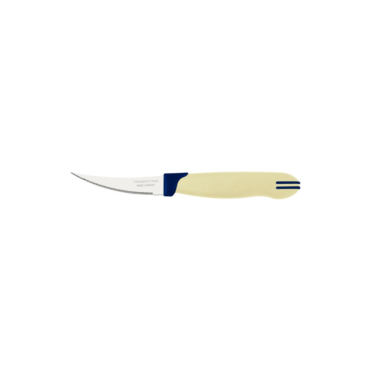 O conjunto de facas para tomate Tramontina Cor & Cor com lâminas de aço inox e cabos de polipropileno creme e azul 02 peças é essencial para proporcionar um corte delicado e preparar suas receitas com mais praticidade, seja uma salada ou um molho especial. Desenvolvidas com lâminas em aço inox com tratamento térmico e cabos de polipropileno, elas garantem maior resistência, durabilidade e excelente poder de corte. As facas ainda podem ser levadas à máquina de lavar louças, otimizando suas tarefas na cozinha!