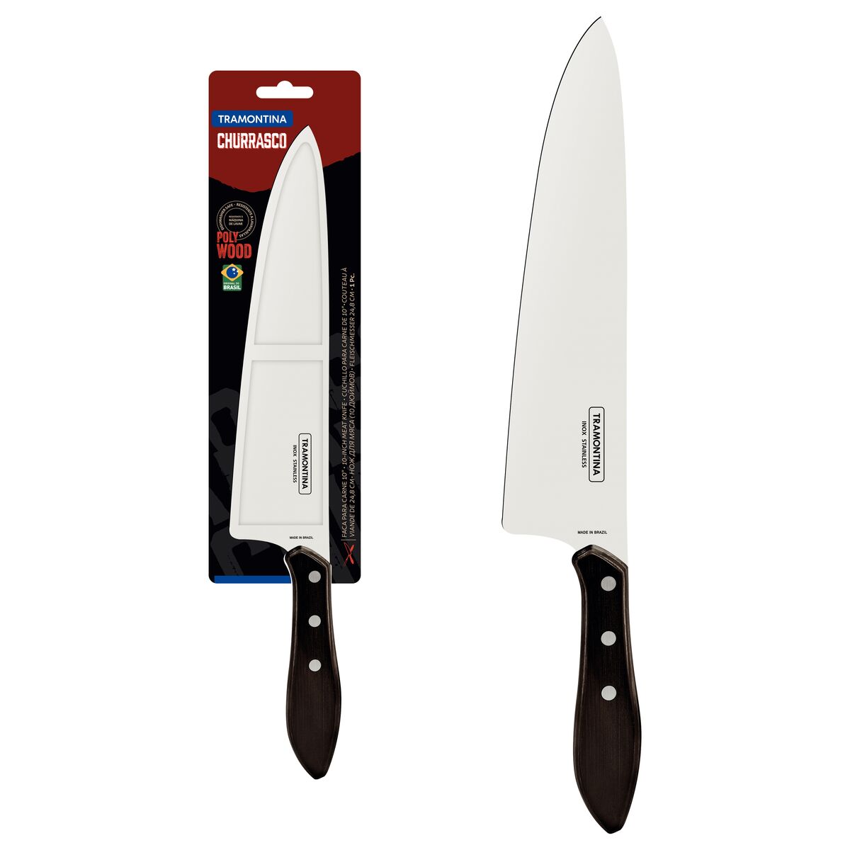 Se você busca cortes perfeitos e beleza para a sua mesa, a Faca Tramontina para Carne 10 polegadas com Lâmina em Aço Inox e Cabo Castanho Polywood é escolha da qual você não irá se arrepender. A lâmina é produzida em aço inox de alta qualidade, cabo de madeira tratada Polywood com resistência à impactos e altas temperaturas que oferece um manuseio seguro e confortável, além disso, os rebites são de alumínio. Suas características a tornam a escolha certa para quem deseja preparar e apreciar os momentos com um delicioso churrasco, garantindo, também, a satisfação dos seus convidados. A linha Churrasco oferece a todo mestre churrasqueiro as facas essenciais para realizar grandes feitos na churrasqueira.