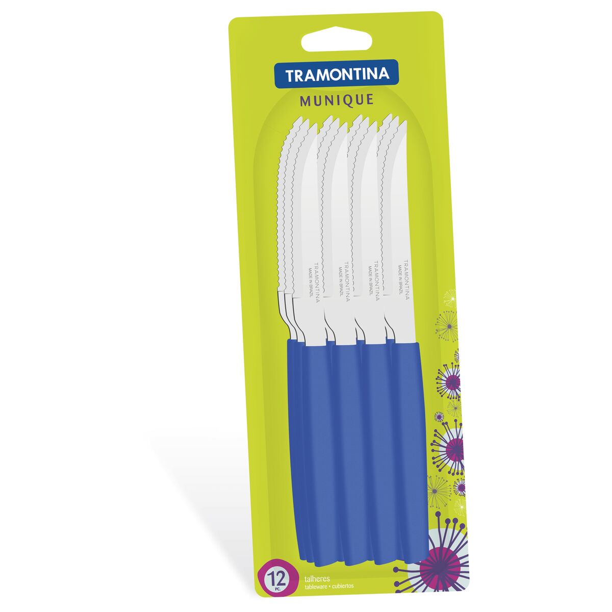 Os talheres da linha Munique são próprios para as refeições diárias. Despojados, têm nas diferentes opções de cores dos cabos de polipropileno o toque de alegria que vai à mesa. As facassão de aço inox em espessuras que garantem alta resistência e durabilidade. O formato das lâminas impede deformações e o tratamento térmico dá vida longa ao fio. Podem ser levados à máquina de lavar.