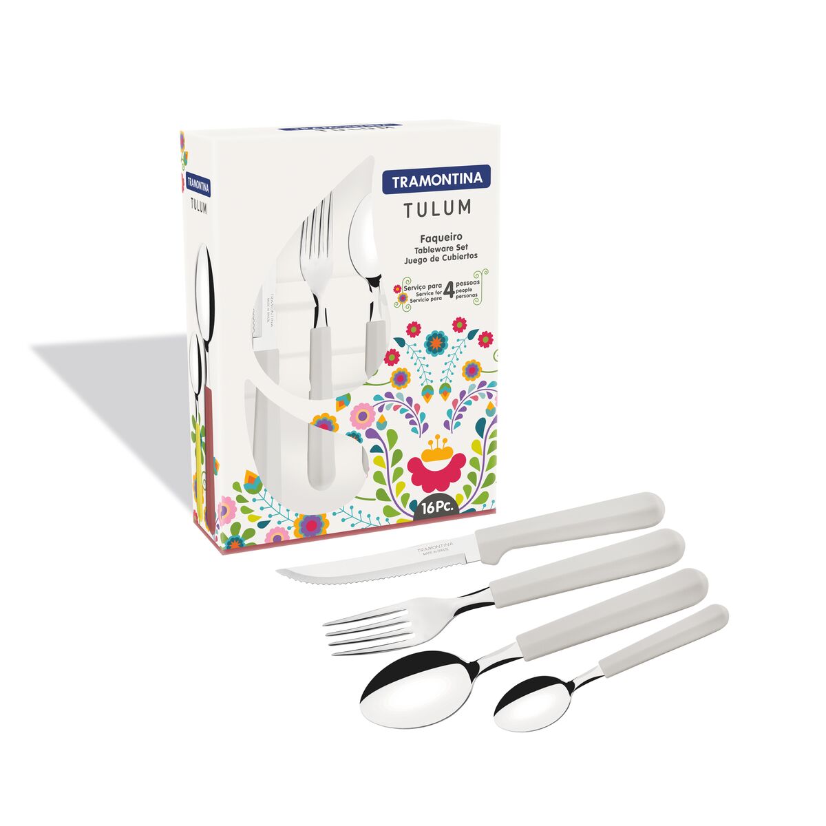 Os talheres da linha Tulum são próprios para as refeições diárias. Despojados, têm nas diferentes opções de cores dos cabos de polipropileno o toque de alegria que vai à mesa. Os garfos, facas e colheres são de aço inox em espessuras que garantem alta resistência e durabilidade. O formato das lâminas impede deformações e o tratamento térmico dá vida longa ao fio. Podem ser levados à máquina de lavar.