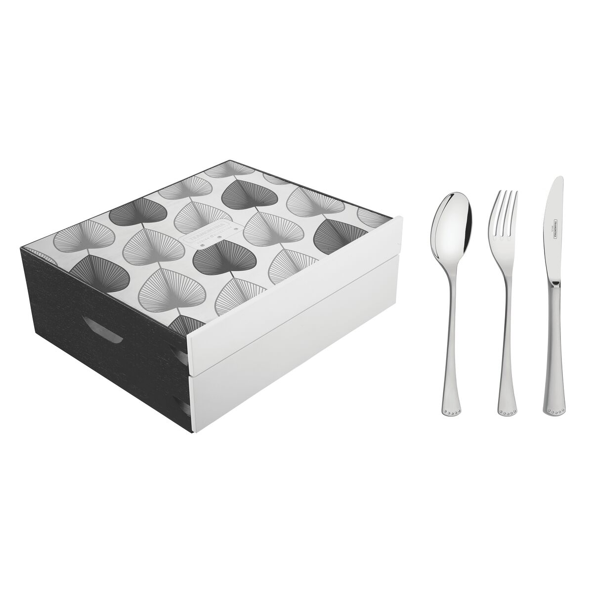Sua cozinha vai ganhar toques de sofisticação e elegância com o Faqueiro Tramontina em Aço Inox com Facas de Mesa Cabo com Cristais Acabamento Brilho e Fosco 101 Peças da Linha Oriente Crystal. Produzido em aço inoxidável, as peças possuem acabamento brilho e fosco com cristais no cabo, que garantem uma aparência de requinte à sua cozinha. São ideais para os serviços básicos à mesa. Com material altamente durável, as facas tem cabo oco e lâminas temperadas, que proporcionam resistência à corrosão e durabilidade no fio de corte. Além disso, a característica de temperabilidade não riscam peças de porcelana. Você ainda vai poder guardá-lo num belo estojo de MDF. Objetos duráveis e nobres para o conforto do seu dia a dia.