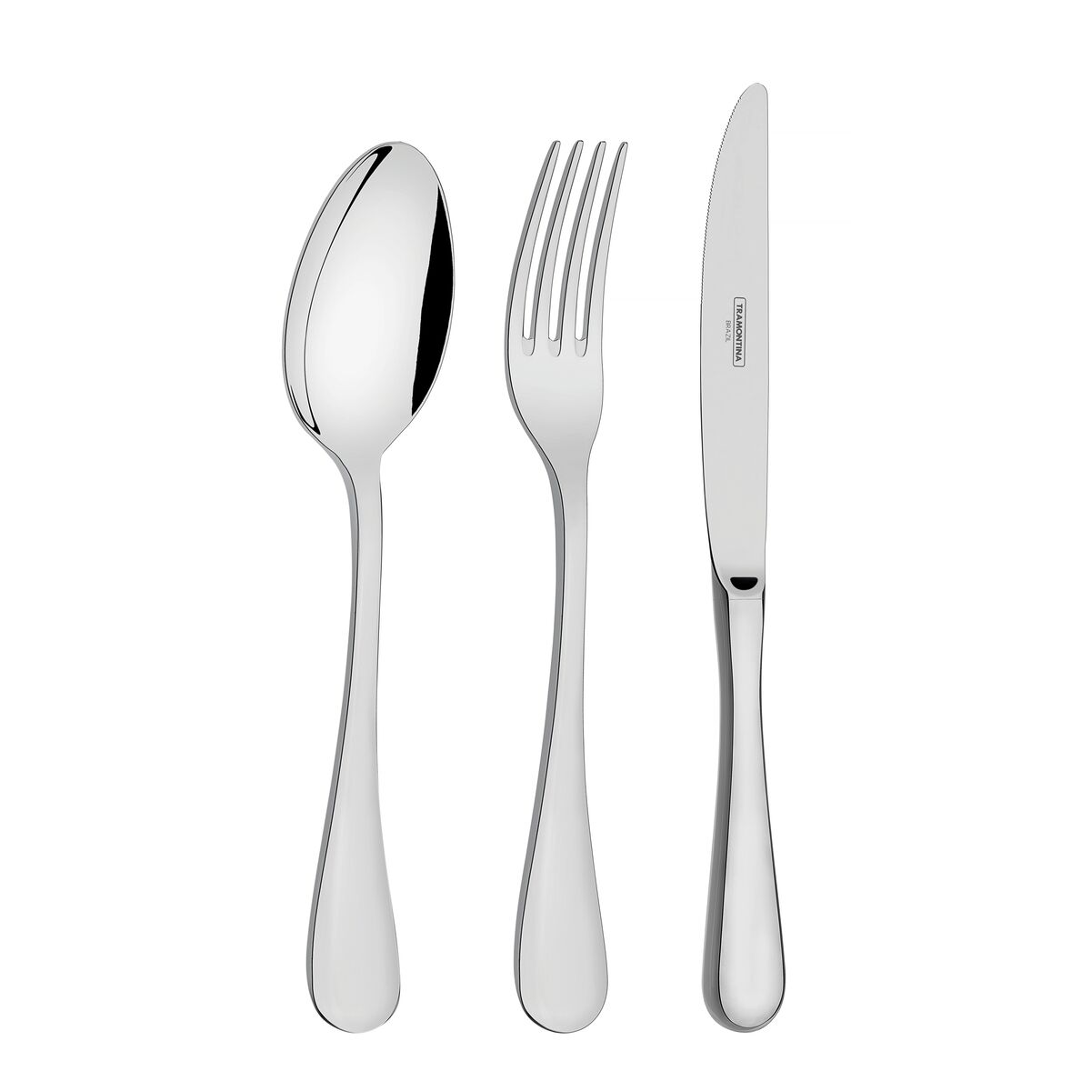 Tenha apenas o melhor no seu serviço de mesa com o lindíssimo Faqueiro Tramontina em Aço Inox com Facas de Mesa Acabamento Brilho sem Estojo 101 Peças da linha Classic, que conta com uma solução completa para serviço de mesa e sobremesa. O jogo conta com colheres com bojo em formato simétrico e bordas cuidadosamente arredondadas. Garfos com dentes polidos na parte interna, com formato apropriado para a boca e bordas arredondadas para proporcionar maior conforto no uso. Facas com lâminas temperadas, que garantem maior durabilidade no fio de corte serrilhado e maior resistência à corrosão, e por suas características de temperabilidade, não riscam as porcelanas. Todas as peças são produzidas em aço inox.