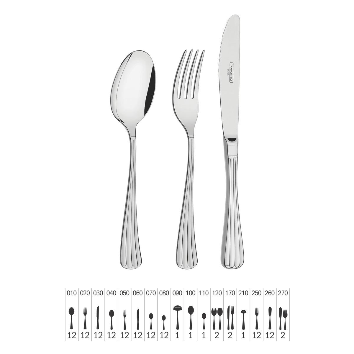Aquela data especial, cheia de significado, fica muita melhor quando recebemos pessoas queridas em casa. Para oferecer os melhores momentos a seus amigos, agora você conta com o Faqueiro Tramontina em Aço Inox com Facas de Mesa Detalhe Alto Relevo e Facas de Mesa sem Estojo 130 Peças, da linha Viena. Aproveite todas as facilidades e benefícios de peças produzidas totalmente em aço inox, com acabamento em alto brilho e detalhes no cabo em alto relevo. Impressione com os detalhes. São facas com lâminas temperadas, que resistem à corrosão, não riscam porcelanas e seguram o fio de corte por mais tempo. As colheres têm bojo simétrico e bordas arredondas e os garfos, com formato perfeito para te dar o maior conforto no uso, apresentam dentes polidos na parte interna. O serviço completo para mesa e sobremesa ainda tem a praticidade de poder ir à máquina de lavar louças diariamente. Aproveite cada momento importante com o melhor em sua mesa.