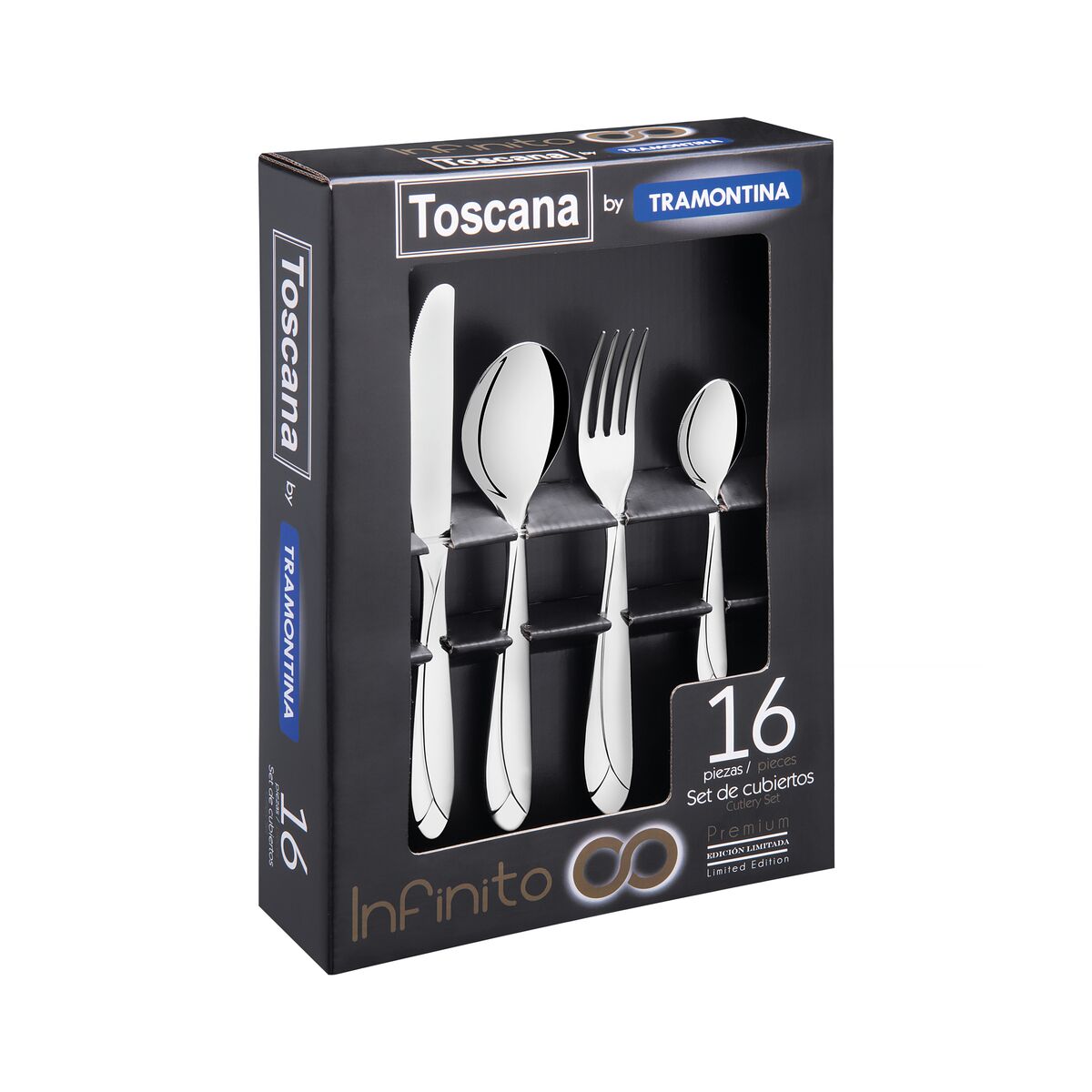 - Acabamento em brilho, com detalhes no cabo.