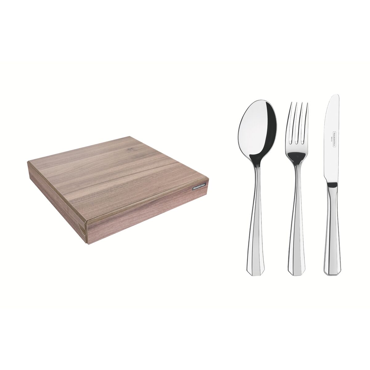 A beleza da sua mesa estará garantida com o Faqueiro Tramontina em Aço Inox com Facas de Mesa Forjadas Acabamento Alto Brilho e Faixa Satinada e Estojo de Madeira com Compartimento Retrátil 30 Peças da linha Ópera. As peças possuem um design diferenciado e moderno, trazendo ainda mais encanto para todas as ocasiões. Produzido totalmente em aço inox, conta com colheres com bojo em formato simétrico e bordas cuidadosamente arredondadas, garfos com dentes polidos na parte interna, com formato apropriado para a boca e bordas arredondadas para proporcionar maior conforto no uso. Além disso, as facas são totalmente temperadas, que garantem maior durabilidade no fio de corte e maior resistência à corrosão, e por suas características de temperabilidade, não riscam as porcelanas. A escolha certa para oferecer um serviço para mesa e sobremesa.