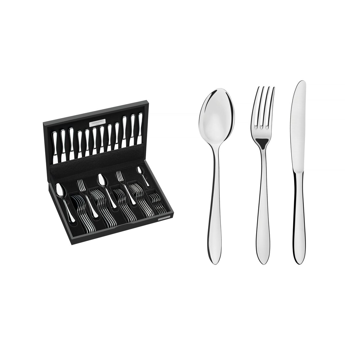 Acondicionado em um lindo estojo de madeira MDF, o Faqueiro Tramontina em Aço Inox com Facas de Mesa Forjadas Acabamento Alto Brilho e Estojo de Madeira 42 Peças da linha Satri deixará a sua mesa ainda mais sofisticada. As colheres possuem bojo em formato simétrico e bordas cuidadosamente arredondadas. Os garfos possuem dentes polidos na parte interna, com formato apropriado para a boca e bordas arredondadas para proporcionar maior conforto no uso. As facas de fio serrilhado são totalmente temperadas, que garantem maior durabilidade no fio de corte e maior resistência à corrosão, e por suas características de temperabilidade, não riscam as porcelanas. Com esse faqueiro você encantará a todos.