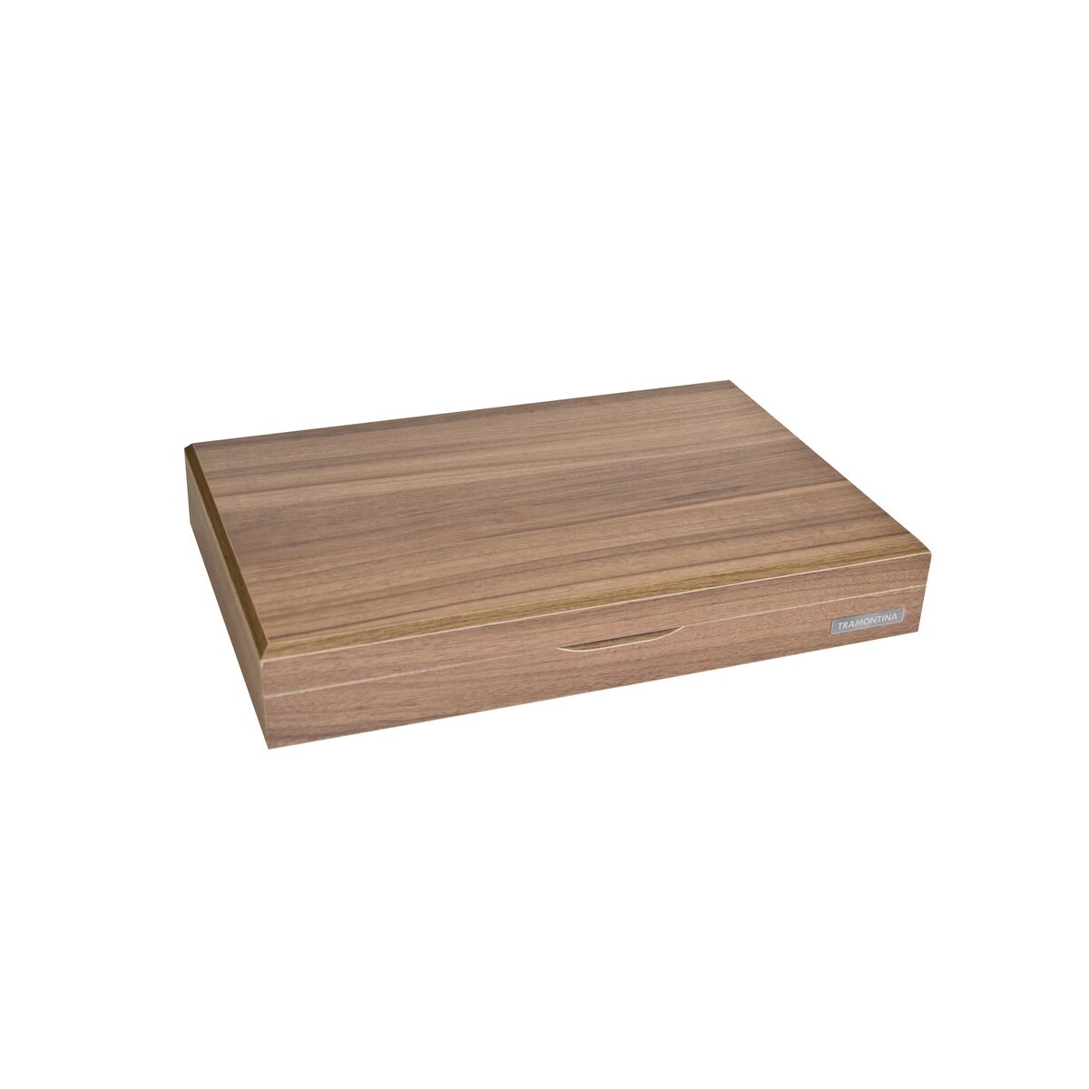 O Faqueiro Tramontina em Aço Inox com Facas de Mesa Acabamento Fosco e Estojo de Madeira 42 Peças da Linha Oriente, é o conjunto perfeito para aliar sofisticação com peças altamente duráveis. Acompanhadas de um belíssimo estojo de madeira MDF, as peças são produzidas em aço inox, que mantém as características originais do produto. Com acabamento fosco, são ideais para as necessidades à mesa e para sobremesas. Os talheres são elegantes e possuem características particulares. As colheres possuem bojo em formato simétrico e bordas cuidadosamente arredondadas. Os garfos com dentes polidos na parte interna, proporcionam maior conforto, pois seu formato e bordas arredondadas são apropriados para a boca. As facas com lâminas temperadas garantem maior durabilidade no fio de corte e maior resistência à corrosão. Além disso, por sua característica de temperabilidade, não riscam as porcelanas. É um faqueiro de requinte e bom gosto para seu lar.