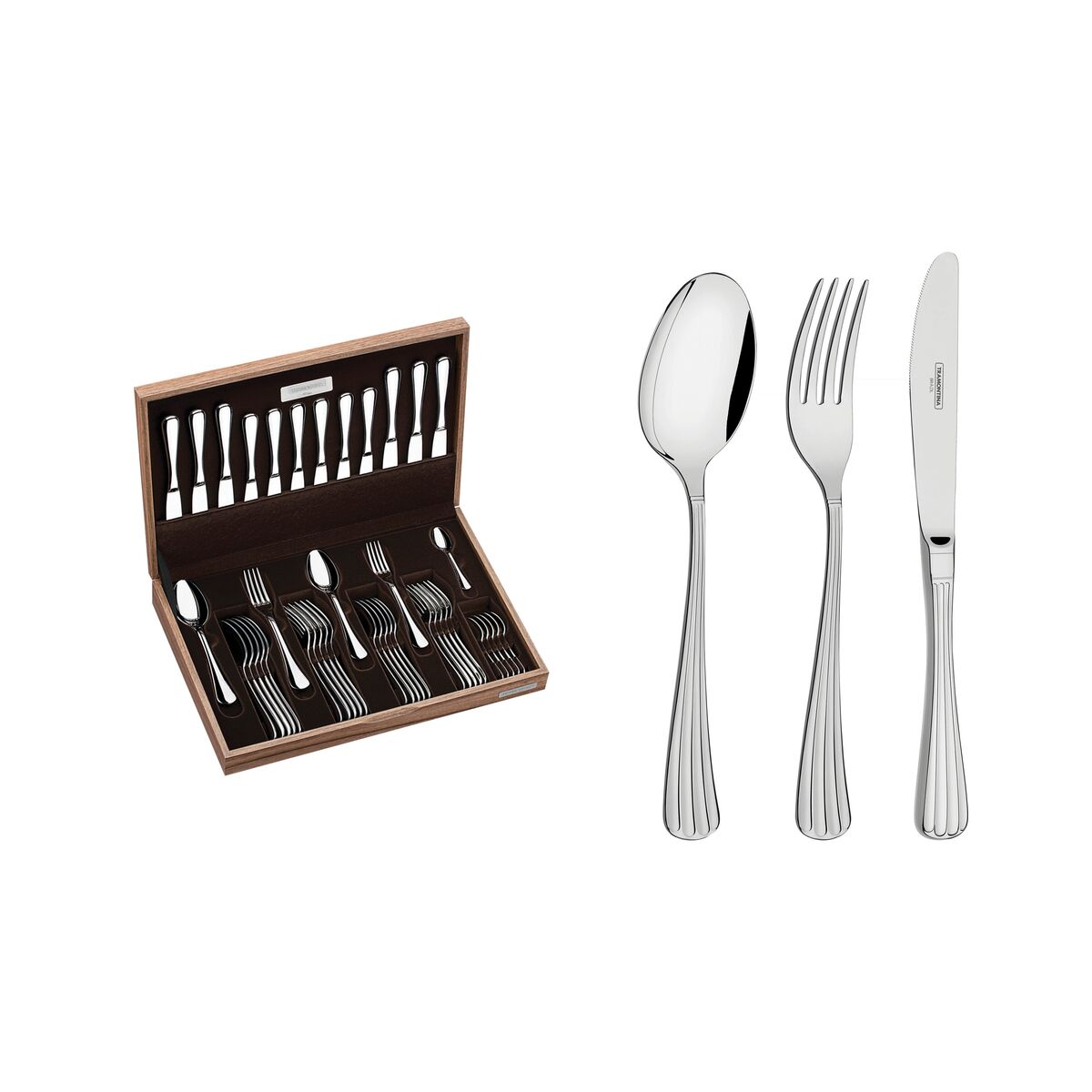 É sempre maravilhoso recebermos amigos em casa e oferecermos um belo serviço para mesa e sobremesa, valorizando a presença de pessoas queridas e importante para nós. Essa tarefa ficou bem mais fácil com o Faqueiro Tramontina em Aço Inox com Facas de Mesa Detalhe Alto Relevo e Estojo de Madeira 42 Peças, da linha Viena. As peças são apresentadas em um belo estojo de madeira MDF e são totalmente produzidas em aço inox, com detalhes em alto relevo no cabo lindo acabamento em alto brilho. As facas garantem o fio de corte por mais tempo, resistem à corrosão e não riscam porcelanas devido às suas lâminas temperadas. As colheres apresentam bojo simétrico com bordas arredondadas e os garfos têm dentes com a parte interna polida, além do formato apropriado e bordas arredondadas para proporcionar conforto no uso. Depois de tudo isso, nem mesmo a praticidade ficou de fora, afinal, as peças podem ser lavadas diariamente em máquina de lavar louças.