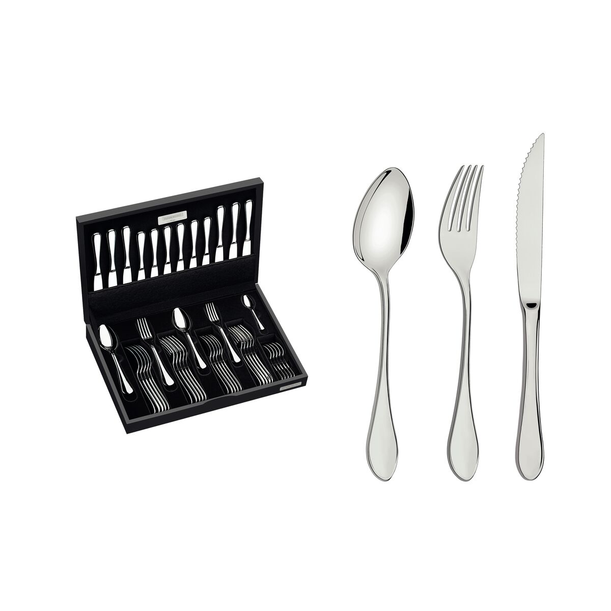Conte com a beleza e o design exclusivo do Faqueiro Tramontina em Aço Inox com Facas para Churrasco Forjadas 6mm Acabamento Alto Brilho e Estojo de Madeira 42 Peças da linha Italy, na sua mesa, levando toda a sofisticação e o brilho do aço inox. O conjunto conta com colheres com bojo em formato simétrico e bordas cuidadosamente arredondadas. Garfos com dentes polidos na parte interna, com formato apropriado para a boca e bordas arredondadas para proporcionar maior conforto no uso. Facas com lâminas temperadas, que garante maior durabilidade no fio de corte serrilhado e maior resistência à corrosão, e por sua característica de temperabilidade, não riscam as porcelanas. Cada peça é produzida em aço inox, proporcionando durabilidade, que mantém as características originais por mais tempo. O faqueiro possibilita um serviço completo para mesa e sobremesa. Acompanha um belíssimo estojo de madeira MDF que pode ser incluído com elegância na sua decoração.