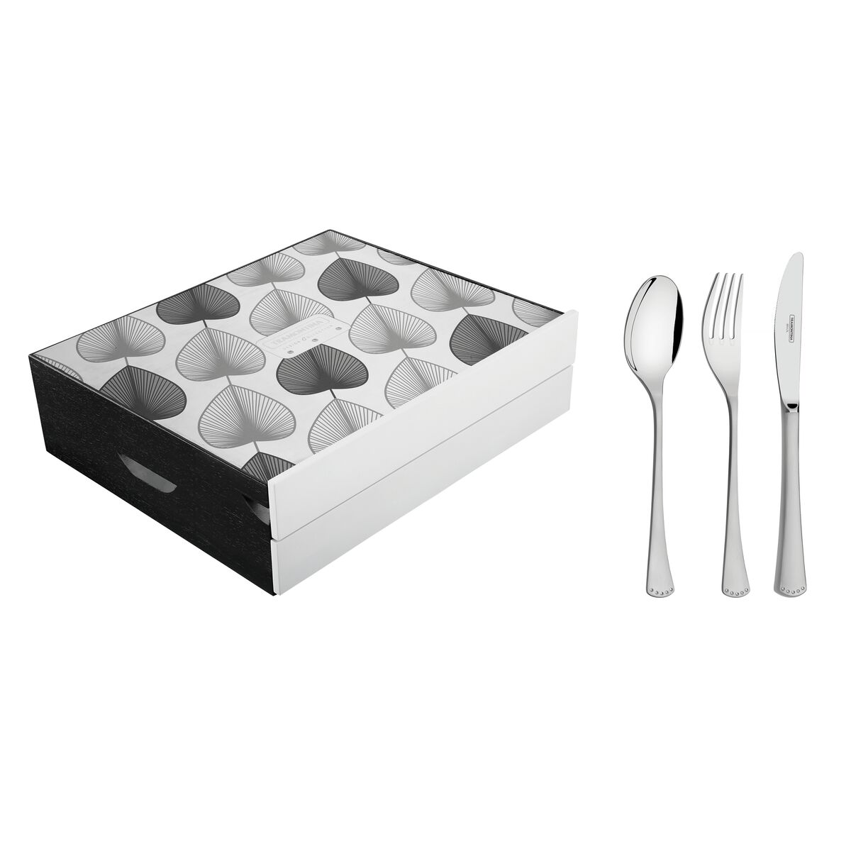 Você vai impressionar os olhares mais exigentes com o Faqueiro Tramontina em Aço Inox com Facas de Mesa Cabo com Cristais Acabamento Brilho e Fosco 42 Peças da Linha Oriente Crystal. Produzido em aço inoxidável, as peças são altamente duráveis e garantem beleza e sofisticação. Perfeitas para os serviços básicos à mesa. O design diferenciado com acabamento em brilho e fosco, assegura elegância em peças com cristais no cabo. As facas chamam a atenção por possuírem cabo oco e lâminas temperadas, que proporcionam resistência à corrosão e durabilidade no fio de corte. Além disso, a característica de temperabilidade das facas não riscam as porcelanas. Acompanha um atraente estojo em MDF, que você pode acomodar as peças perfeitamente. Os olhares atentos vão se maravilhar com esse conjunto.