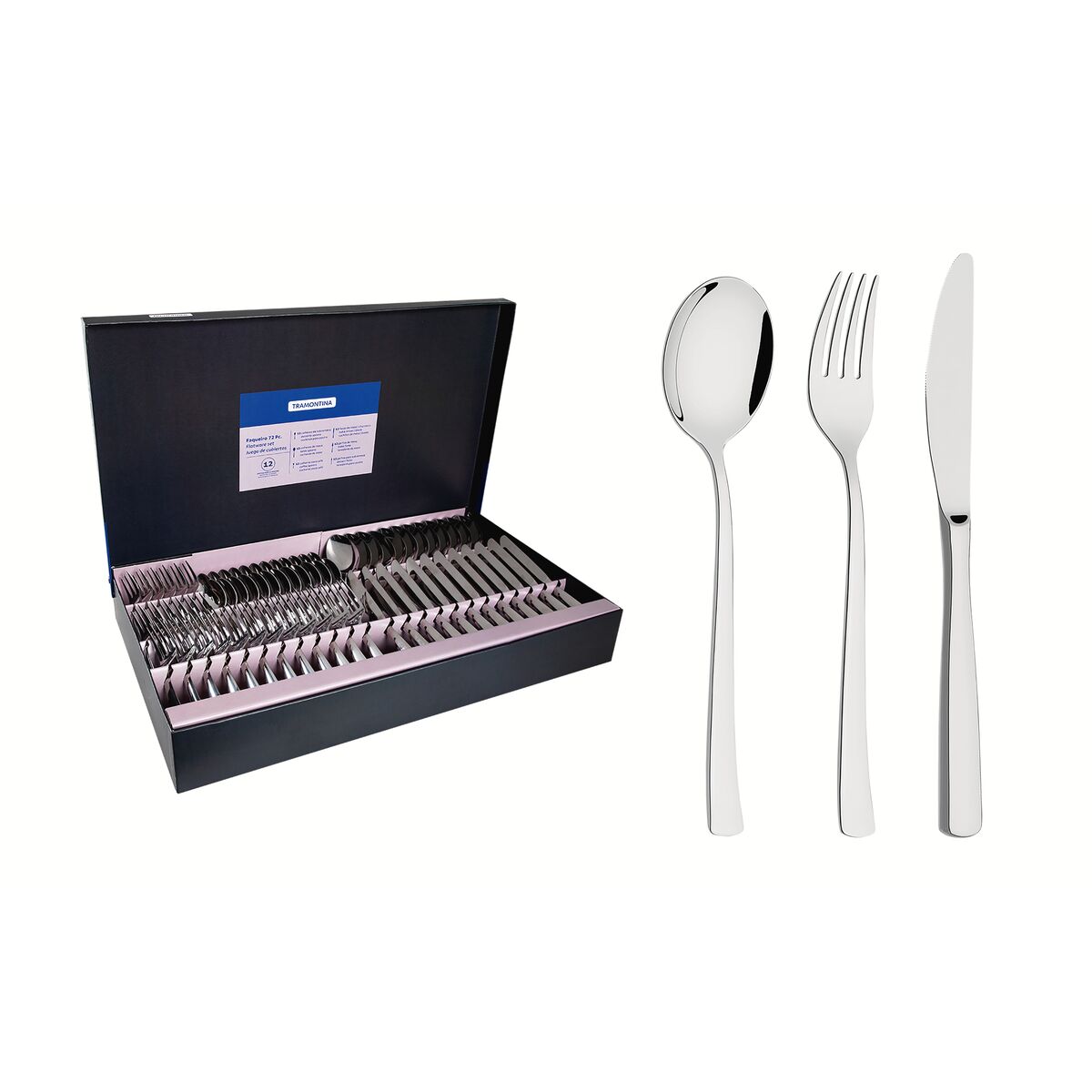 Mantenha a sua mesa sofisticada com as lindas peças do Faqueiro Tramontina em Aço Inox com Facas de Mesa Forjada Acabamento Alto Brilho 72 Peças da linha Berlin Brilho. Um jogo completo para serviço de até 12 pessoas, oferecendo colheres com bojo em formato simétrico e bordas cuidadosamente arredondadas. Garfos com dentes polidos na parte interna, com formato apropriado para a boca e bordas arredondadas para proporcionar maior conforto no uso. Facas totalmente temperadas, que garantem maior durabilidade no fio de corte serrilhado e maior resistência à corrosão, e por suas características de temperabilidade, não riscam as porcelanas. Os belíssimos talheres são produzidos em aço inox, o que garante sua durabilidade. Seu acabamento em alto brilho trará ainda mais elegância para qualquer ocasião.