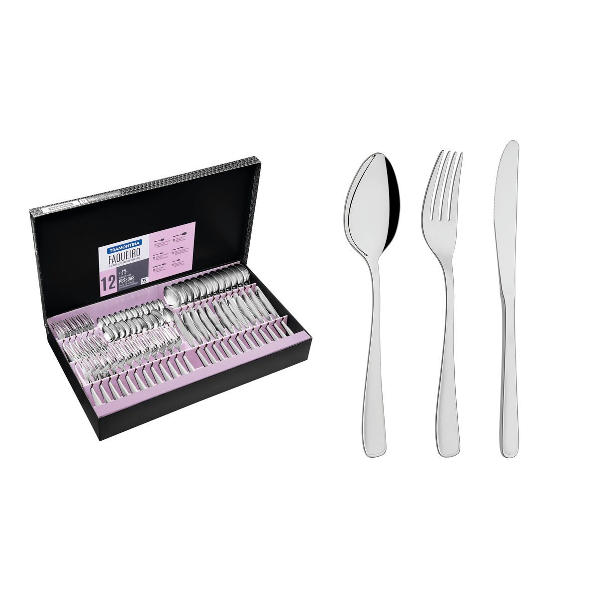Com o Faqueiro Tramontina em Aço Inox com Facas de Mesa Acabamento Brilho e Fosco 72 Peças da linha Continental você poderá ter as mais belas peças bem na sua mesa. A melhor escolha para você oferecer aquele almoço ou jantar com muito estilo. Um incrível jogo que acompanha colheres com bojo em formato simétrico e bordas cuidadosamente arredondadas. Garfos com dentes polidos na parte interna, com formato apropriado para a boca e bordas arredondadas para proporcionar maior conforto no uso. Facas de fio serrilhado totalmente temperadas, que garantem maior durabilidade no fio de corte e maior resistência à corrosão, e por suas características de temperabilidade, não riscam as porcelanas. As peças são produzidas totalmente em aço inox, o que proporciona durabilidade e preservação das suas características originais por muito mais tempo. Conta com um lindo acabamento em fosco e brilho, oferecendo serviço para até 8 pessoas.