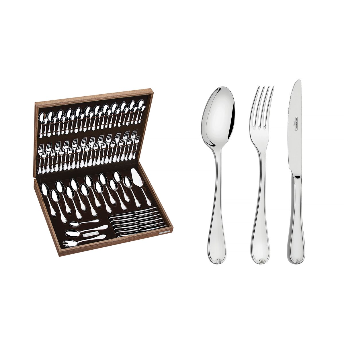 Um belo jantar inicia na cozinha e termina na mesa. Com o Faqueiro Tramontina em Aço Inox com Facas de Mesa Forjadas Acabamento Alto Brilho com Detalhes no Cabo e Estojo de Madeira 76 Peças da linha Vicenza, é possível levar brilho e elegância para a sua mesa, proporcionando ainda mais encantamento. Conta com colheres com bojo em formato simétrico e bordas cuidadosamente arredondadas. Garfos com dentes polidos na parte interna, com formato apropriado para a boca e bordas arredondadas para proporcionar maior conforto no uso. Facas com lâminas temperadas, que garante maior durabilidade no fio de corte serrilhado e maior resistência à corrosão, e por sua característica de temperabilidade, não riscam as porcelanas. Seu belo estojo em madeira MDF permite um armazenamento cuidadoso das peças, além de decorar ambientes. Os talheres são produzidos em aço inox, altamente duráveis e com um brilho único. Os detalhes exclusivos do cabo tornam as peças ainda mais surpreendentes.