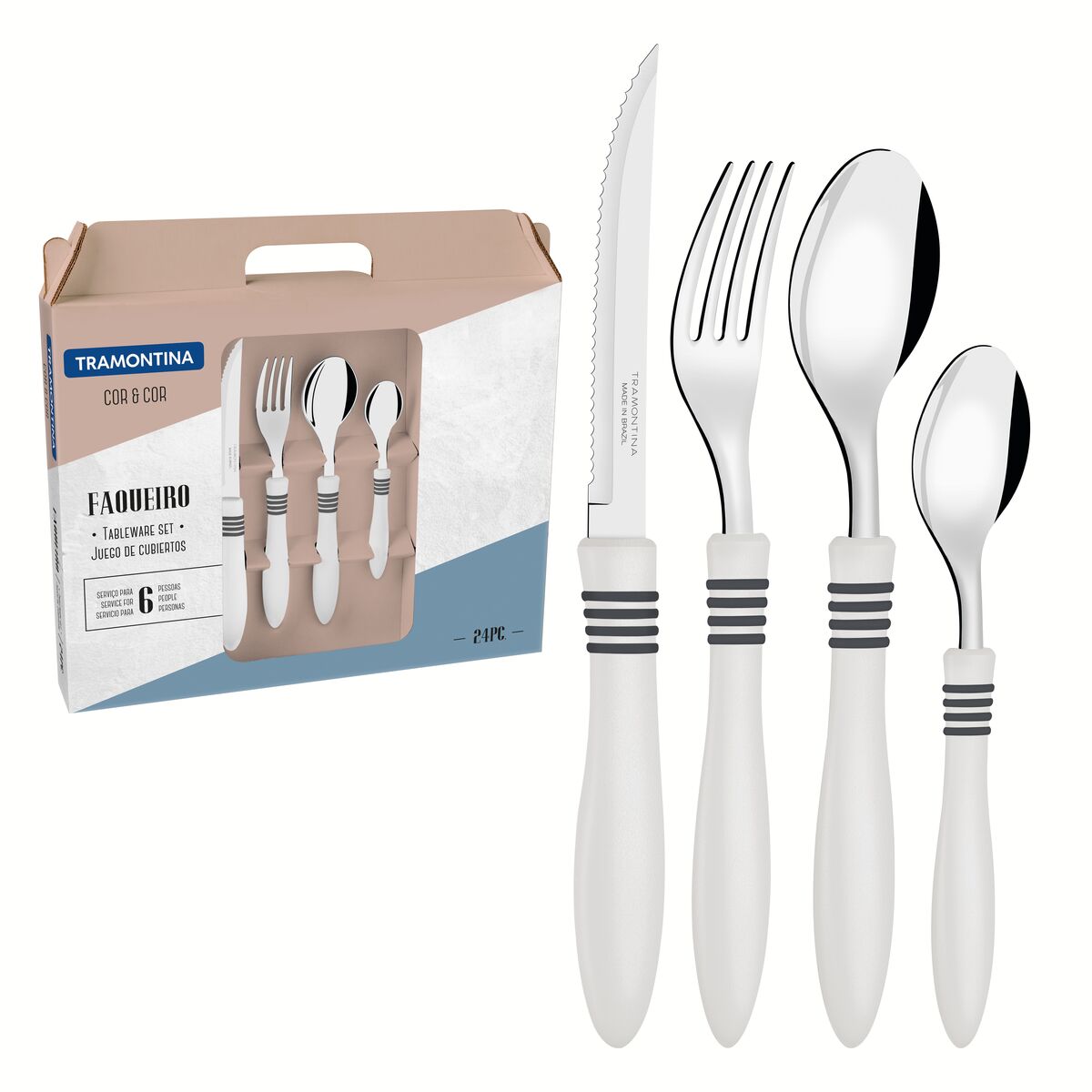Faqueiro Tramontina Cor & Cor com Lâminas em Aço Inox e Cabos de Polipropileno Off-White 24 Peças