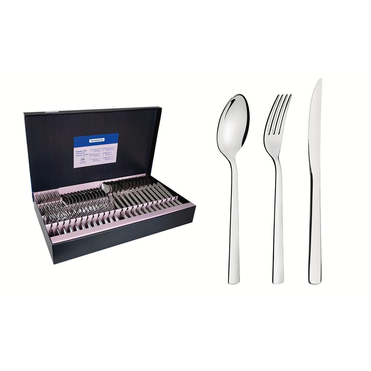 - As peças são acondicionadas em uma bela embalagem. - Totalmente feitas de aço inox, altamente duráveis, mantêm suas características originais, preservando a beleza, a higiene e a durabilidade do material. - Colheres com bojo em formato simétrico ebordas cuidadosamente arredondadas. - Garfos com dentes polidos na parte interna, com formato apropriado para a boca e bordas arredondadas para proporcionar maior conforto no uso. - Facas totalmente temperadas, que garantem maior durabilidade no fio de corte e maior resistência à corrosão, e por suas características de temperabilidade, não riscam as porcelanas. - Acabamento em alto brilho. - Podem ser lavadas diariamente na máquina de lavar louças.
