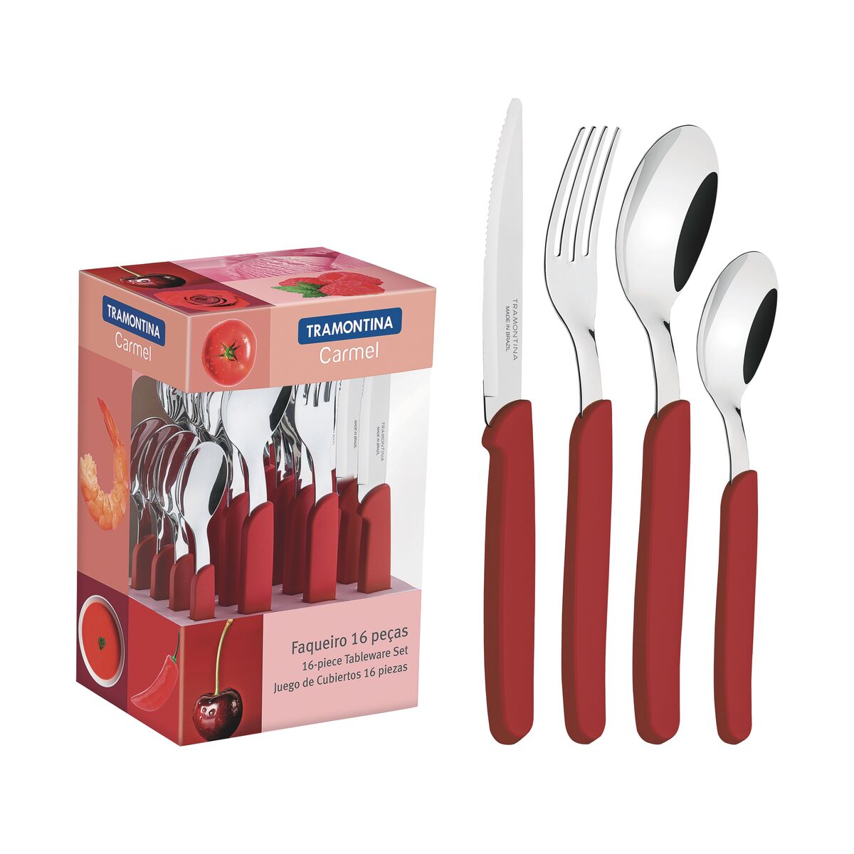 Faqueiro Tramontina Carmel com Lâminas em Aço Inox e Cabos de Polipropileno Carmín Médio 16 Peças