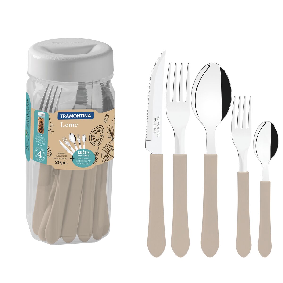 Deixe sua mesa muito mais bonita e cheia de estilo com o faqueiro Tramontina Leme com lâminas em aço inox e cabos de polipropileno cinza 20 peças! Perfeito para uso diário, ele tem peças produzidas com lâminas em aço inox com resistência e durabilidade devido ao tratamento térmico e a espessura. Os cabos são em polipropileno e proporcionam um manuseio superconfortável, além de deixar a composição da sua mesa muito mais elegante, devido a cor cinza. O faqueiro ainda é muito fácil de limpar e poder ser levado à máquina de lavar louças, facilitando suas tarefas na cozinha. Com a Tramontina, você tem os melhores talheres para sua casa!