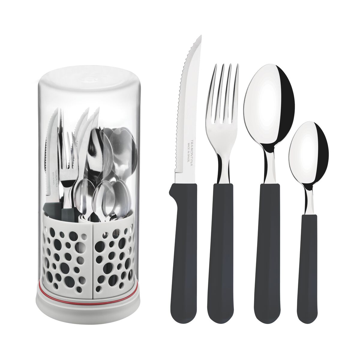 Talheres e acessórios funcionais compõem a Linha Multiply. Além dos garfos, facas, colheres e colheres para chá, com a qualidade do aço e acabamento em polipropileno que você já conhece, a linha acompanha porta-talheres que pode se transformar em porta-lápis e container com diferentes utilizações na cozinha, no banheiro e até no escritório. Estenda a alegria e funcionalidade da cozinha ao resto da casa. O seu dia a dia merece mais cor com a versatilidade e o charme da Linha Multiply. Todas as peças podem ser levadas à máquina de lavar louças.