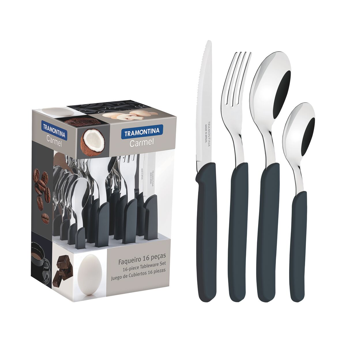 Faqueiro Tramontina Carmel com Lâminas em Aço Inox e Cabos de Polipropileno Natural Escuro 16 Peças