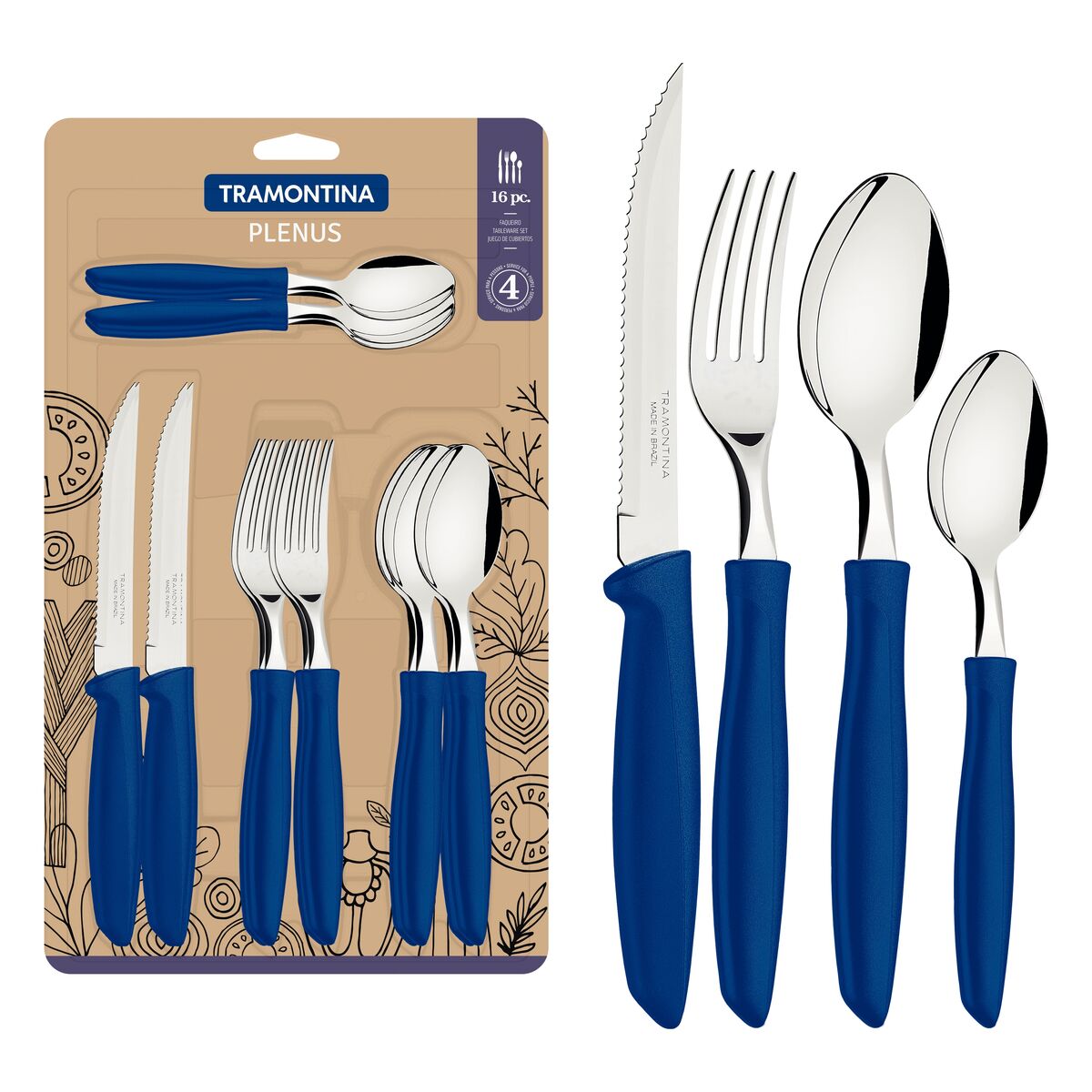 Faqueiro Tramontina Plenus com Lâminas em Aço Inox e Cabos de Polipropileno Azul 16 Peças