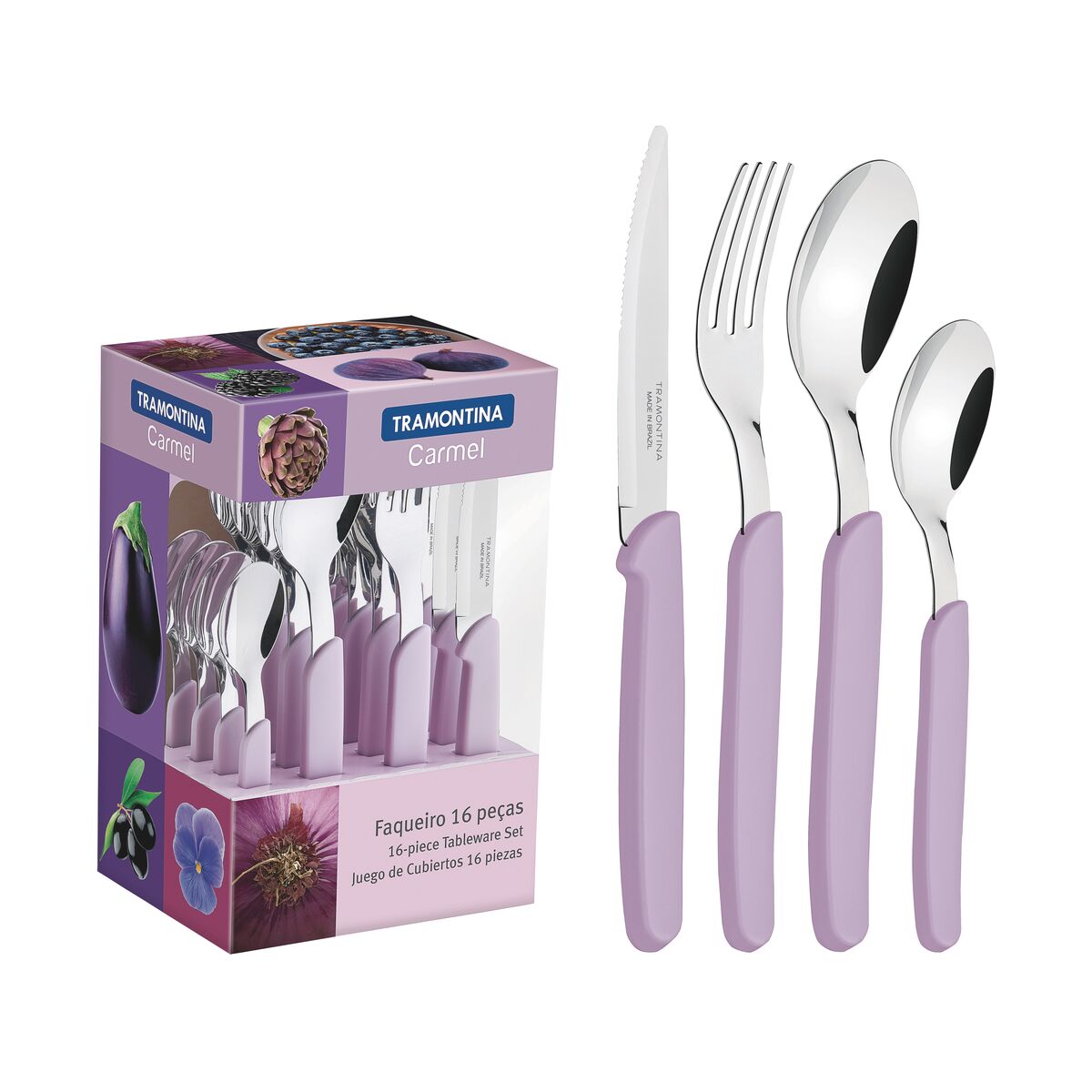 Faqueiro Tramontina Carmel com Lâminas em Aço Inox e Cabos de Polipropileno Púrpura Claro 16 Peças