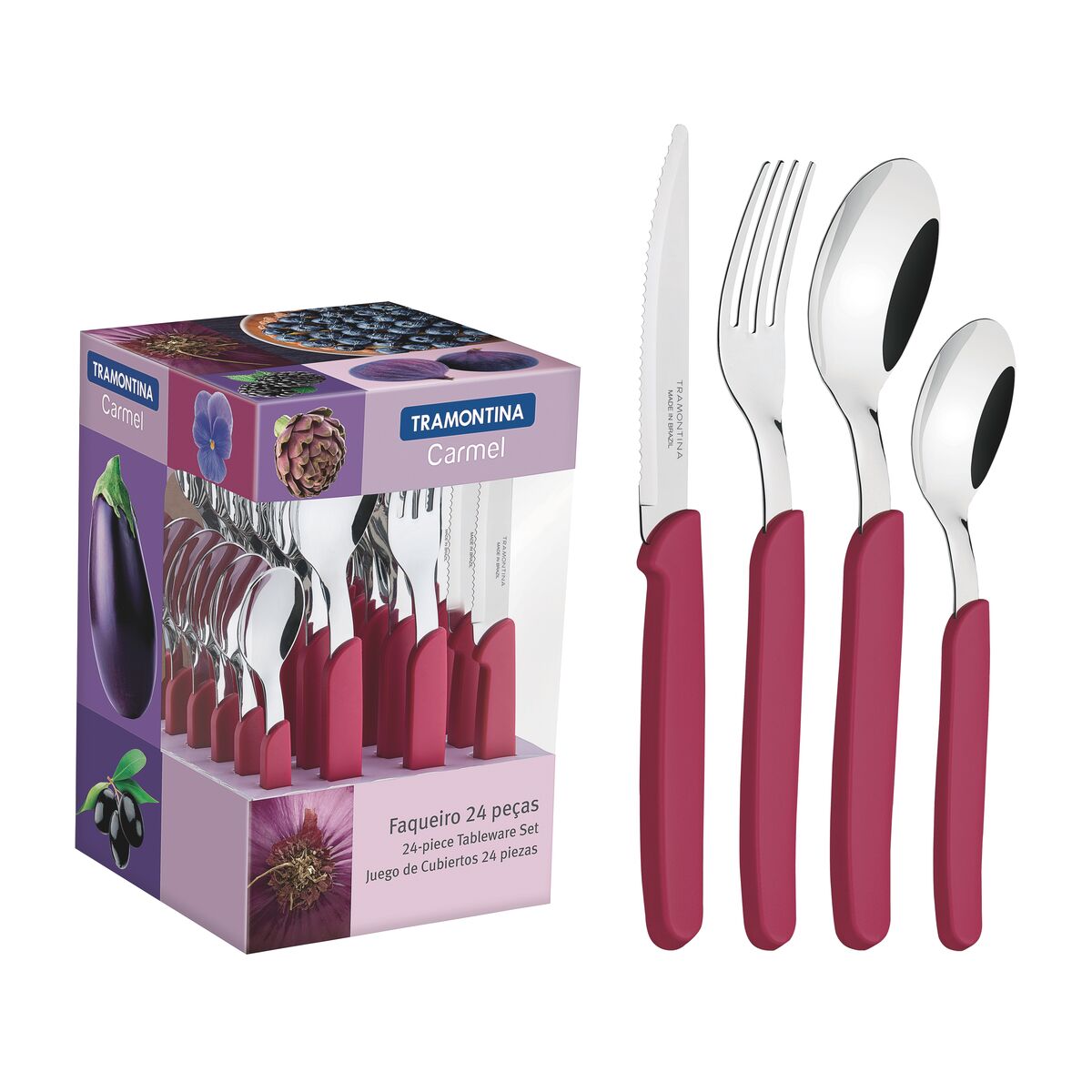 Faqueiro Tramontina Carmel com Lâminas em Aço Inox e Cabos de Polipropileno Púrpura Médio 24 Peças