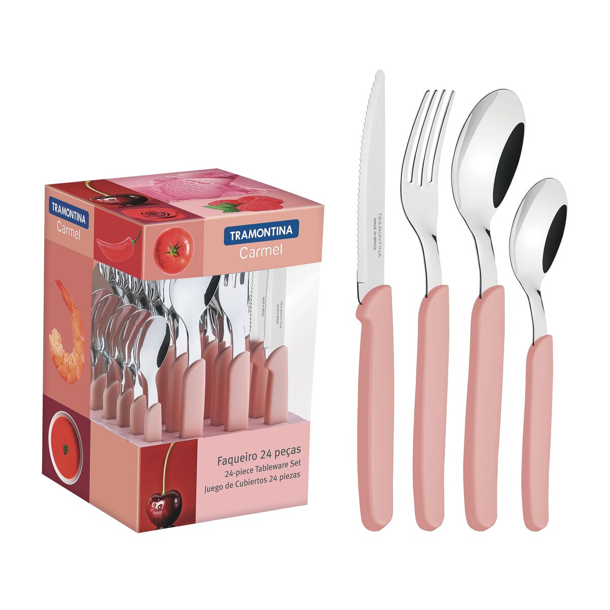 Faqueiro Tramontina Carmel com Lâminas em Aço Inox e Cabos de Polipropileno Carmín Claro 24 Peças