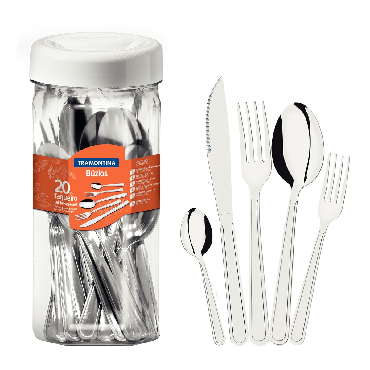 4 23763000 Colher de mesa + 4 23757000 Colher para chá + 4 23750004 Faca para churrasco 4" + 4 23762000 Garfo de mesa + 4 23755000 Garfo para sobremes