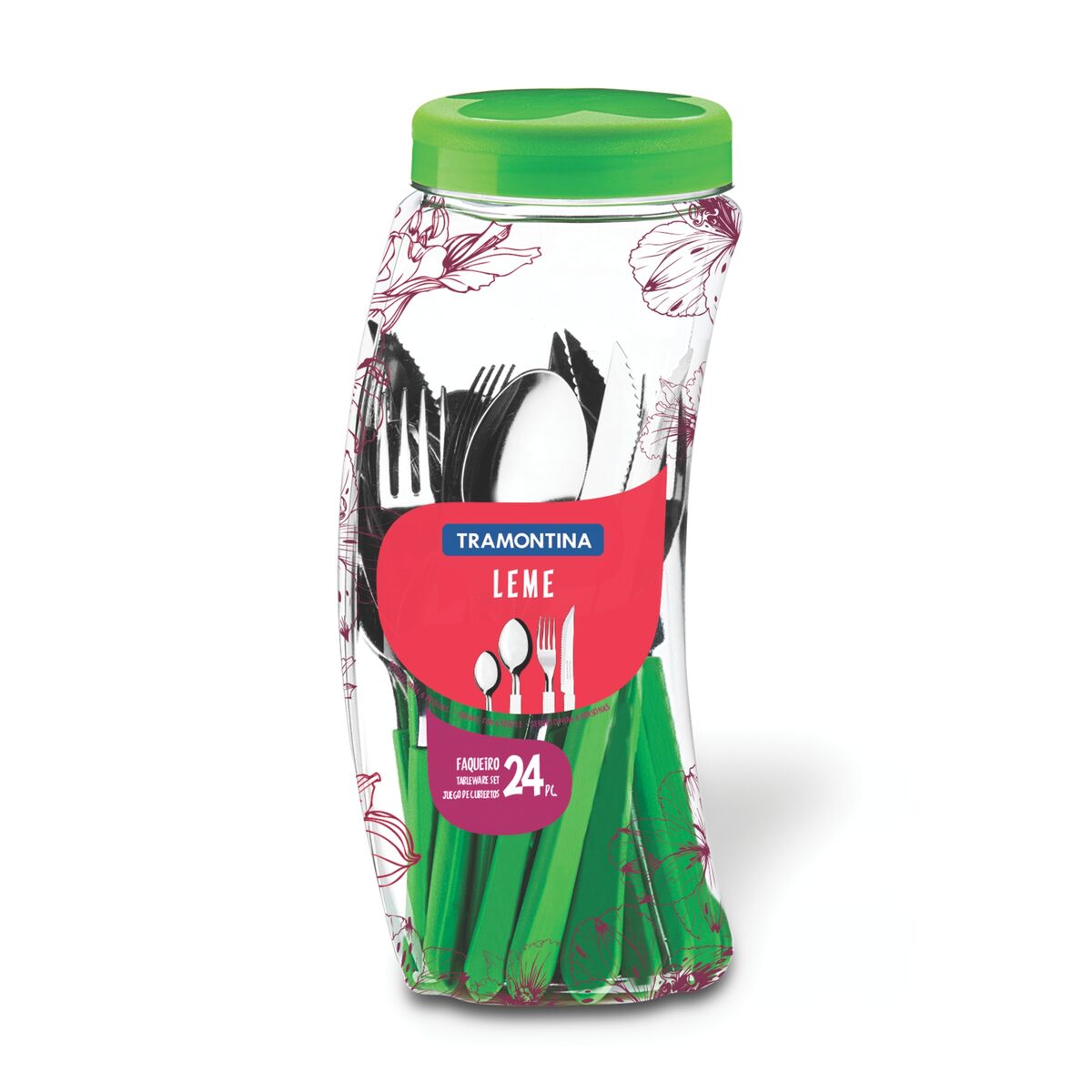 Leve à mesa a alegria das cores. Os talheres da linha Leme tem cabos coloridos e resistentes de polipropileno. Com lâminas em aço inox, a facas, o garfos e as colheres têm alta resistência e durabilidade. As lâminas das facas recebem tratamento térmico que lhes garante vida longa ao fio. Todas as peças podem ir à máquina de lavar.