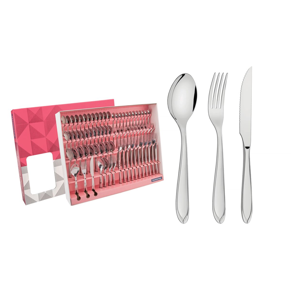 12 63906010 Colher de mesa + 12 63906300 Colher média + 12 63906080 Colher para café + 12 63906070 Colher para chá + 12 63906180 Faca para churrasco + 12 63906020 Garfo de mesa + 12 63906140 Garfo para torta