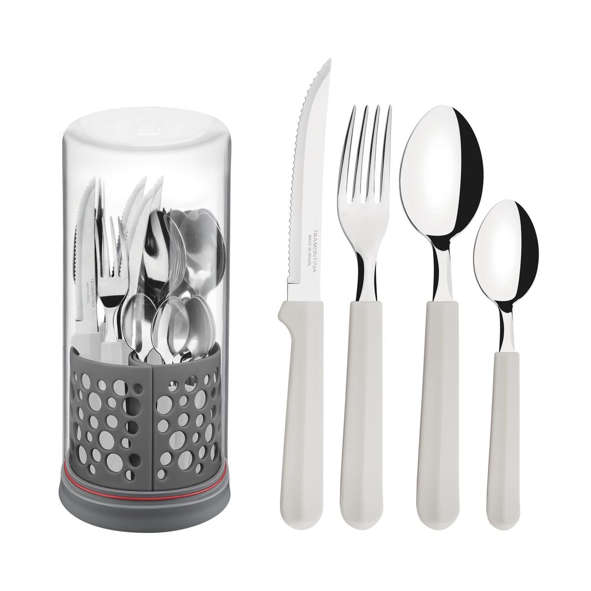 Faqueiro Tramontina Multiply com Lâminas em Aço Inox e Cabos de Polipropileno Off White 27 Peças
