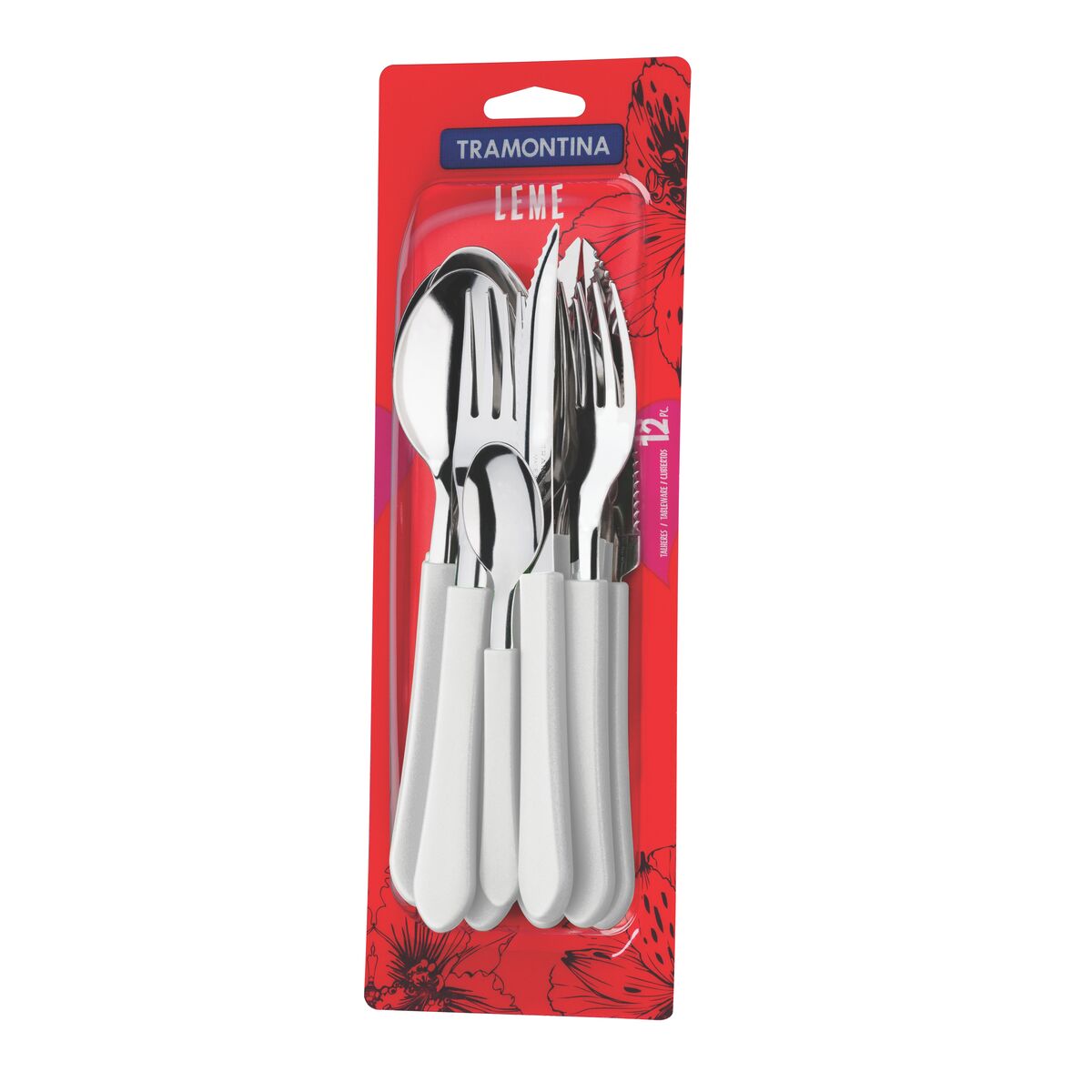 3 23183080 Colher de mesa + 3 23187080 Colher para chá + 3 23180084 Faca de churrasco 4" + 3 23182080 Garfo de mesa