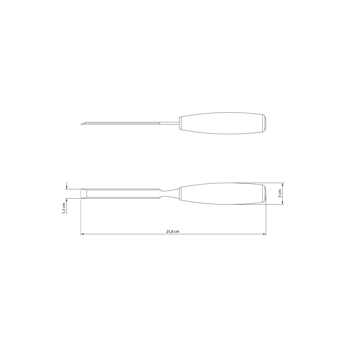 Dimensão em centímetros (Compr. X Larg. X Alt.): 25,8 x 3 x 3 cm