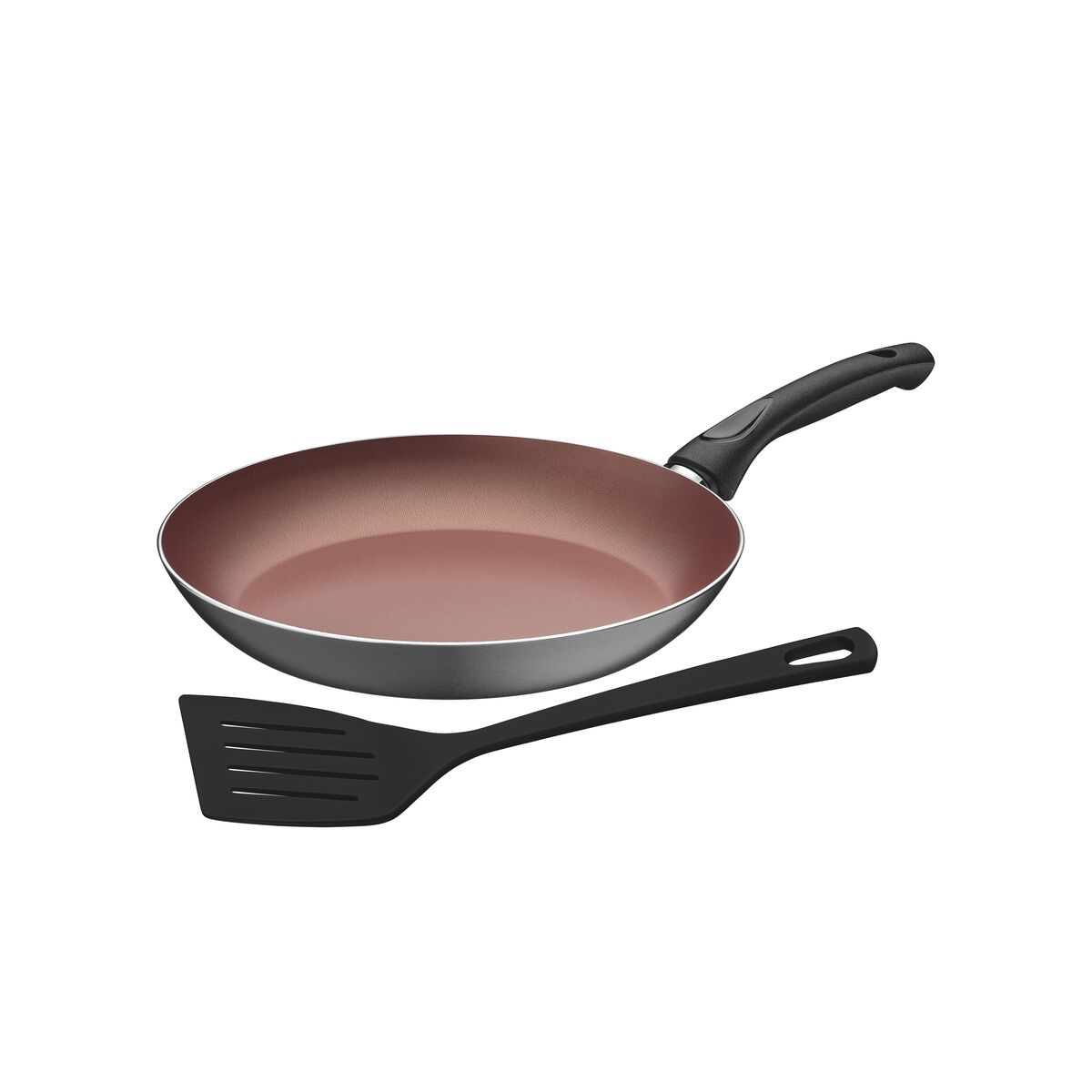 A frigideira Tramontina Vermont em alumínio com revestimento interno cobre antiaderente Starflon Max com cabo baquelite e espátula grafite 24 centímetros de diâmetro 1,2 litros é um item que vai dar um toque especial a sua cozinha. Ela possui revestimento interno e externo em antiaderente Starflon Max e corpo em alumínio que proporcionam o cozimento uniforme dos alimentos, evitam que eles grudem em sua superfície e devido a isso, a tornam mais fácil de limpar e não prejudicial a saúde. Seu cabo em baquelite antitérmico reduz a propagação de calor e proporciona um manuseio muito mais seguro e confortável. Além disso, ela vem acompanhada de uma espátula de nylon ideal para utilização no preparo das receitas, pois não danifica seu antiaderente!