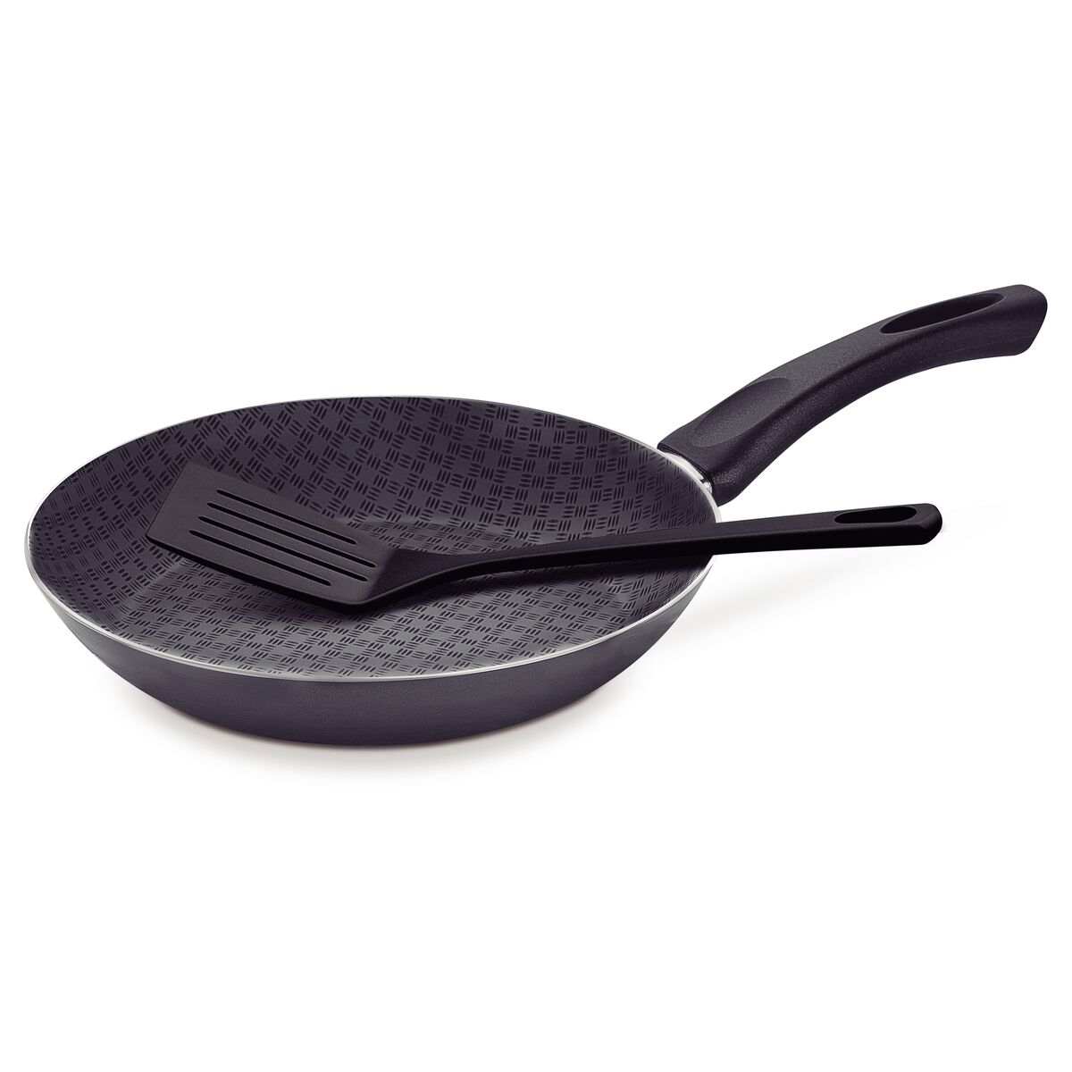 Alumínio com revestimento interno e externo de antiaderente Starflon T1. Cabo de baquelite antitérmico. Espátula de nylon.