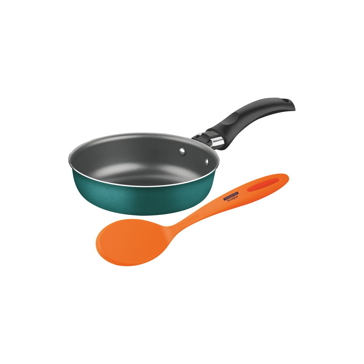 Para deixar suas refeições mais saborosas no café da manhã, a Frigideira para Ovo Tramontina Verde em Alumínio com Revestimento Interno Antiaderente Starflon T1 Cabo Baquelite 13 cm de diâmetro com Espátula Laranja de Nylon é uma excelente opção. Produzida em alumínio com revestimento interno e externo de antiaderente Starflon T1, único com a tecnologia T. Tem maior poder de antiaderência, maior resistência à abrasão, maior durabilidade, maior facilidade na limpeza e livre de PFOA. Possui cabo de baquelite antitérmico e acompanha espátula para ovo de nylon. Mais uma linda peça da linha Breakfast para realçar o prazer do seu café da manhã.