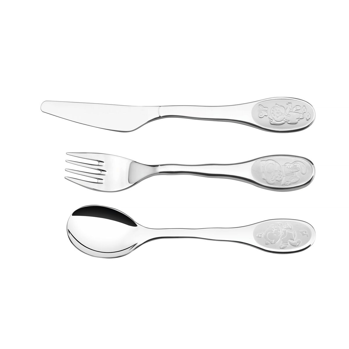 Jogo de Talheres Infantil Tramontina Catty em Aço Inox Acabamento Brilho com Desenho em Baixo Relevo 3 Peças