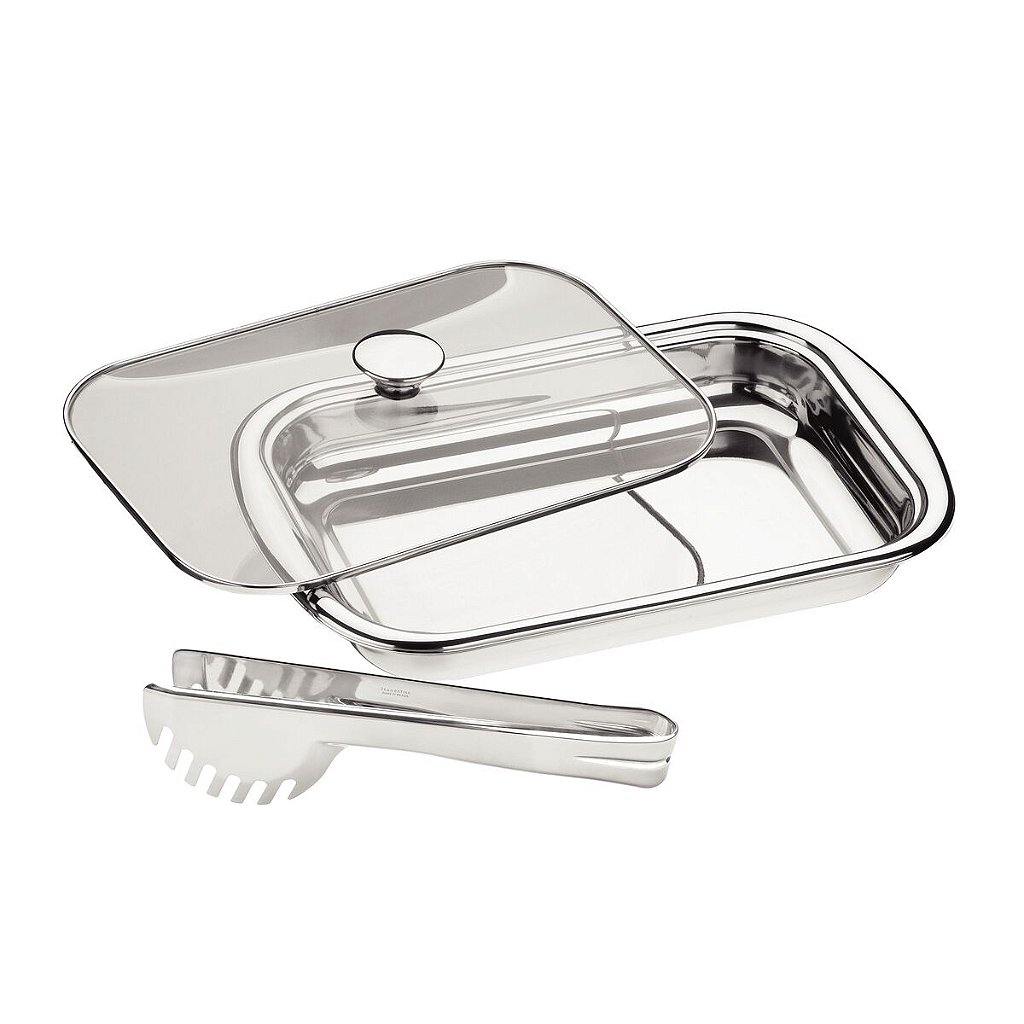 1 61315344 Assadeira Tramontina Cosmos Retangular em Aço Inox com Tampa de V
