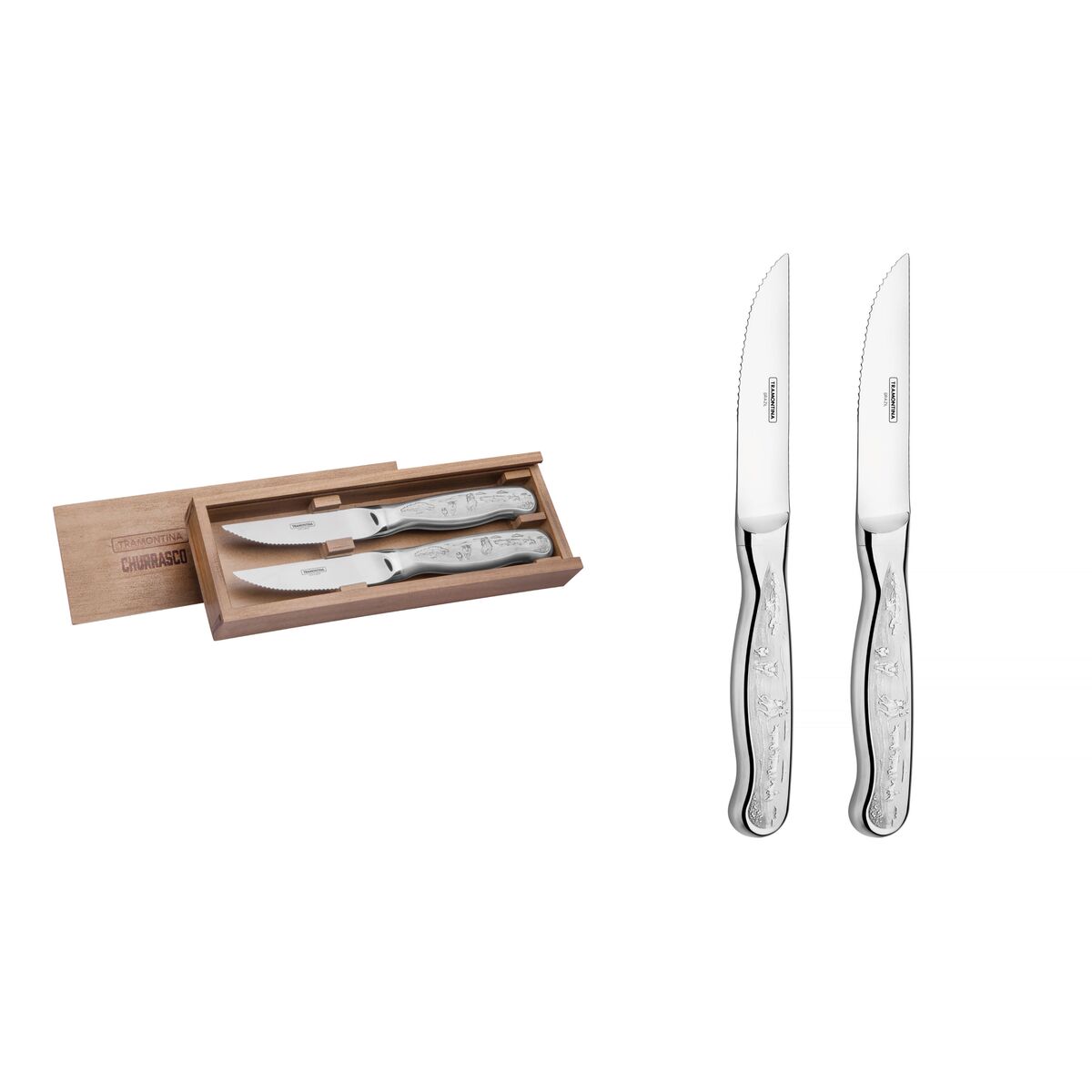 Conjunto de Facas para Churrasco Tramontina Classic em Aço Inox com Estojo Cabo com Desenhos em Alto Relevo 2 Peças