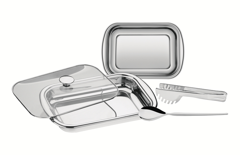 1 61315394 Assadeira Tramontina Cosmos Retangular em Aço Inox com Tampa de V