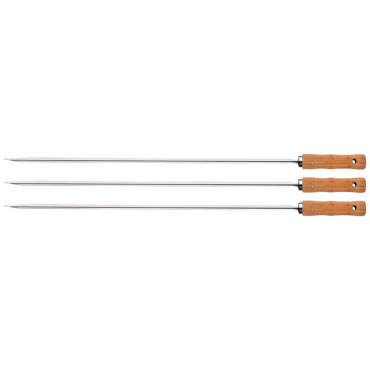 Com o jogo de espetos para churrasco Tramontina com lâminas em aço inox e cabos de madeira 3 peças você vai querer fazer churrasco todo dia. E não há problemas, com esse conjunto você poderá espetar e assar com tranquilidade. As peças são produzidas com lâminas de aço inox e cabos de madeira, proporcionando alta durabilidade e qualidade para o seu dia a dia. A escolha ideal para você tornar todo churrasco em uma ocasião especial.