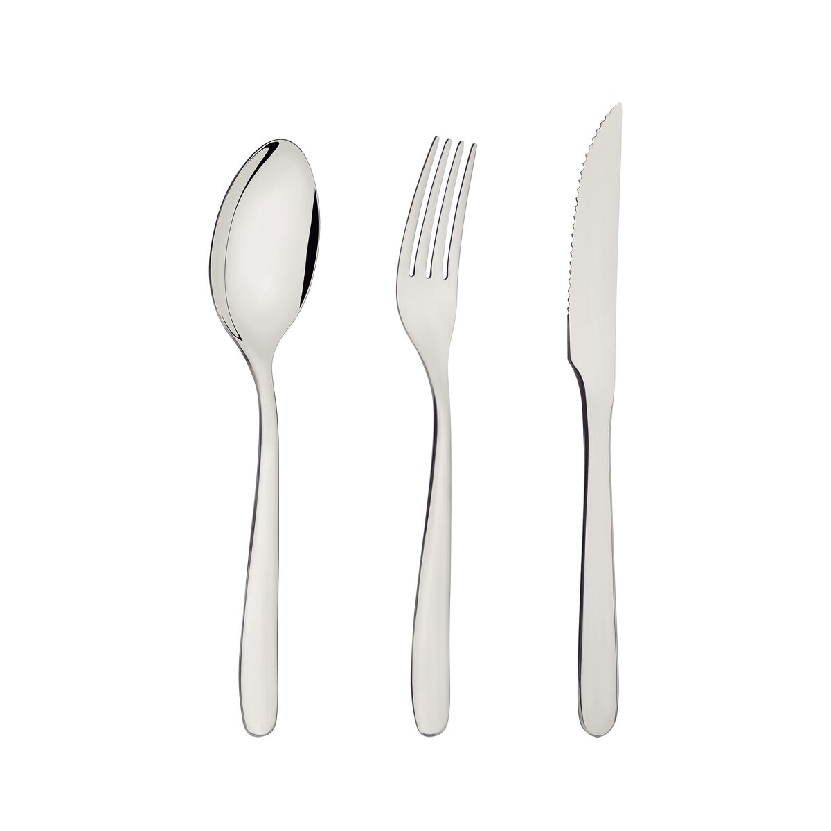 São talheres altamente duráveis perfeitos para uso diário. As colheres possuem bojo em formato simétrico e bordas cuidadosamente arredondadas. Os garfos tem dentes polidos na parte interna com formato apropriado para a boca e bordas arredondadas para proporcionar maior conforto no uso. As facas totalmente temperadas garantem maior durabilidade no fio de corte e maior resistência à corrosão. Além disso, por suas características de temperabilidade, as facas não riscam as porcelanas. Práticas, as peças podem ser lavadas diariamente na máquina de lavar louças. Suas receitas vão ser servidas com mais sabor com esse faqueiro especial!