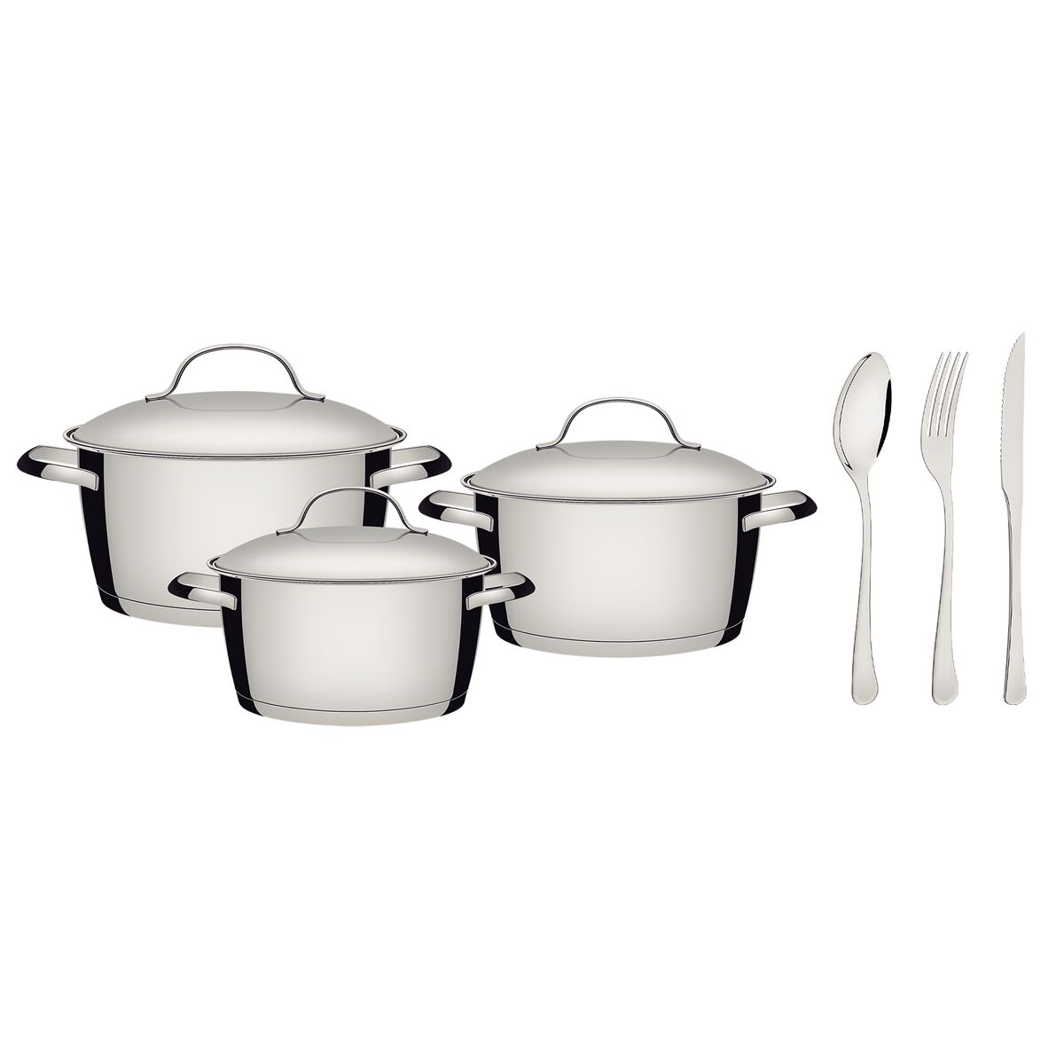 O Jogo de Panelas Tramontina Allegra em Aço Inox com Fundo Triplo e Tampas de Inox vai tornar sua cozinha mais completa! Produzidas totalmente em aço inox, as três peças possuem fundo triplo (aço inox + alumínio + aço inox), característica que distribui o calor de forma uniforme, proporcionando um cozimento mais rápido e deixando os alimentos aquecidos por mais tempo, além de economizar mais energia. Estilosas, possuem acabamento em alto brilho que fazem delas protagonistas na hora de preparar e servir alimentos. Acompanham tampa com saída de vapor e encaixe perfeito. Muito fáceis de limpar, possuem desenho sem cantos que facilita a limpeza, além de poderem ser lavadas diariamente na máquina de lavar louças. São ainda panelas versáteis que pode ser utilizadas em diferentes tipos de fogões. Garanta o seu jogo e prepare as melhores receitas!