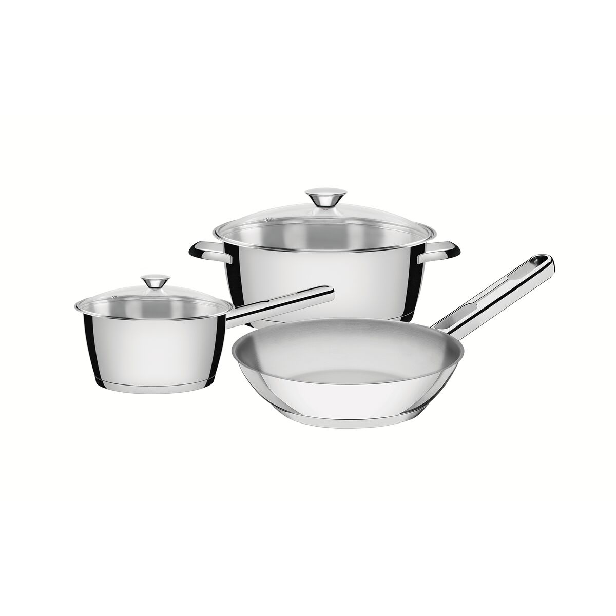 Tenha produtos práticos e diferenciados na sua cozinha. O Jogo de Panelas Tramontina Allegra em Aço Inox com Fundo Triplo 3 Peças facilita seu dia-a-dia e ainda embeleza sua cozinha. São 3 peças com design moderno que dá um toque cheio de estilo ao ambiente. Elas ainda apresentam tecnologia de fundo triplo (aço inox + alumínio + aço inox), distribuindo melhor o calor, proporcionando um cozimento mais rápido e uniforme. E o melhor, economizando mais energia! São totalmente produzidas em aço inox, material que atesta alta durabilidade e bom gosto. Acompanham tampa com saída de vapor e são ainda muito fáceis de limpar. Podendo ser lavadas diariamente na máquina de lavar louças Elas ainda impressionam pela versatilidade, podendo ser usadas em diferentes tipos de fogões.