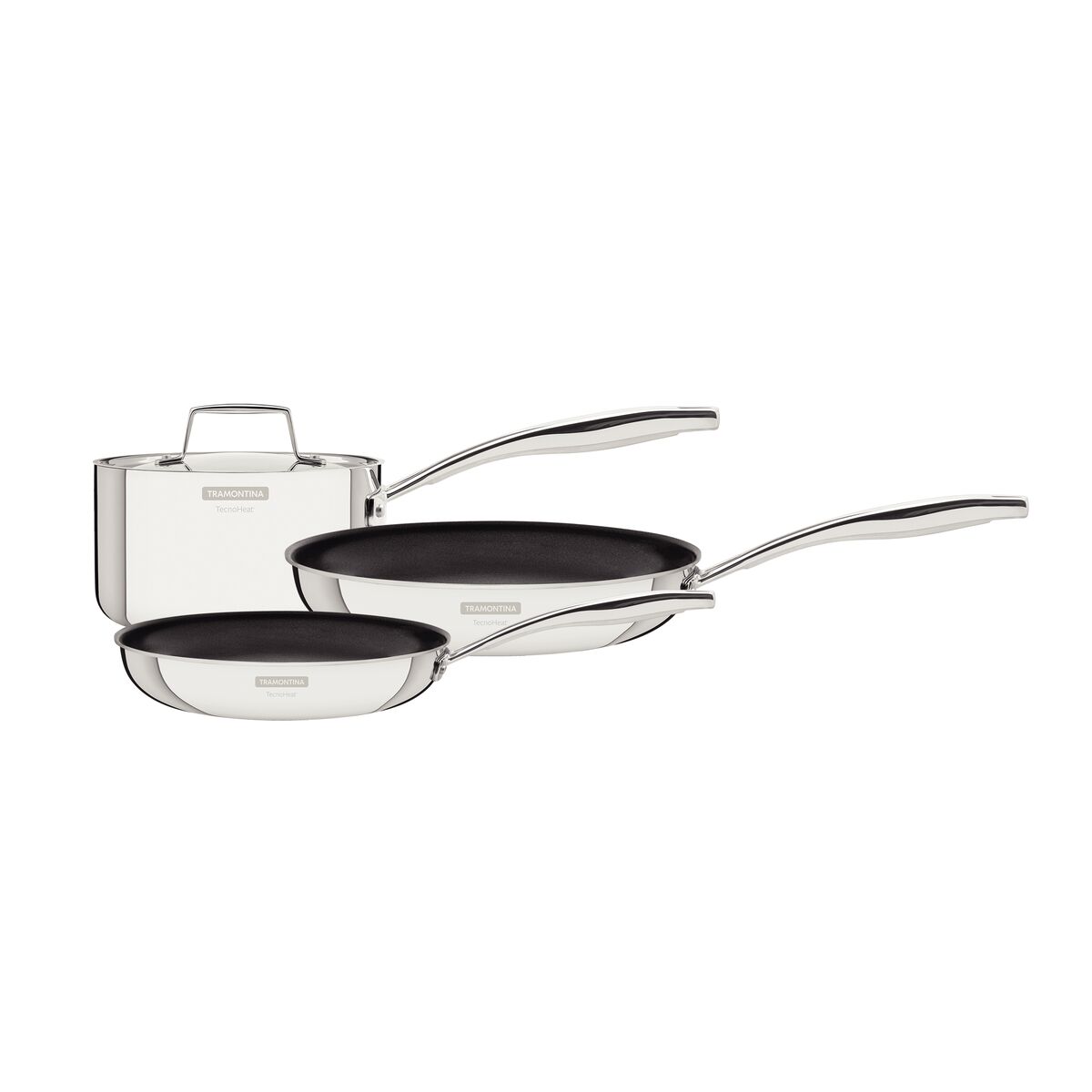 O Jogo de Panelas Tramontina Grano em Aço Inox com Corpo Triplo 3 Peças vai deixar sua experiência na cozinha ainda mais especial! Suas peças são produzidas em aço inox com corpo triplo (aço inox + alumínio + aço inox), característica que auxilia na distribuição do calor de maneira uniforme e proporciona o cozimento mais rápido e dos alimentos. Elas possuem um design moderno com acabamento em brilho e tampa com saída de vapor, que facilita e deixa o preparo dos alimentos ainda mais prático. Além disso, elas são altamente resistentes e duráveis, fáceis de limpar e podem ser levadas à máquina de lavar louças todos os dias. A escolha ideal para deixar a hora de preparar suas refeições ainda melhor!