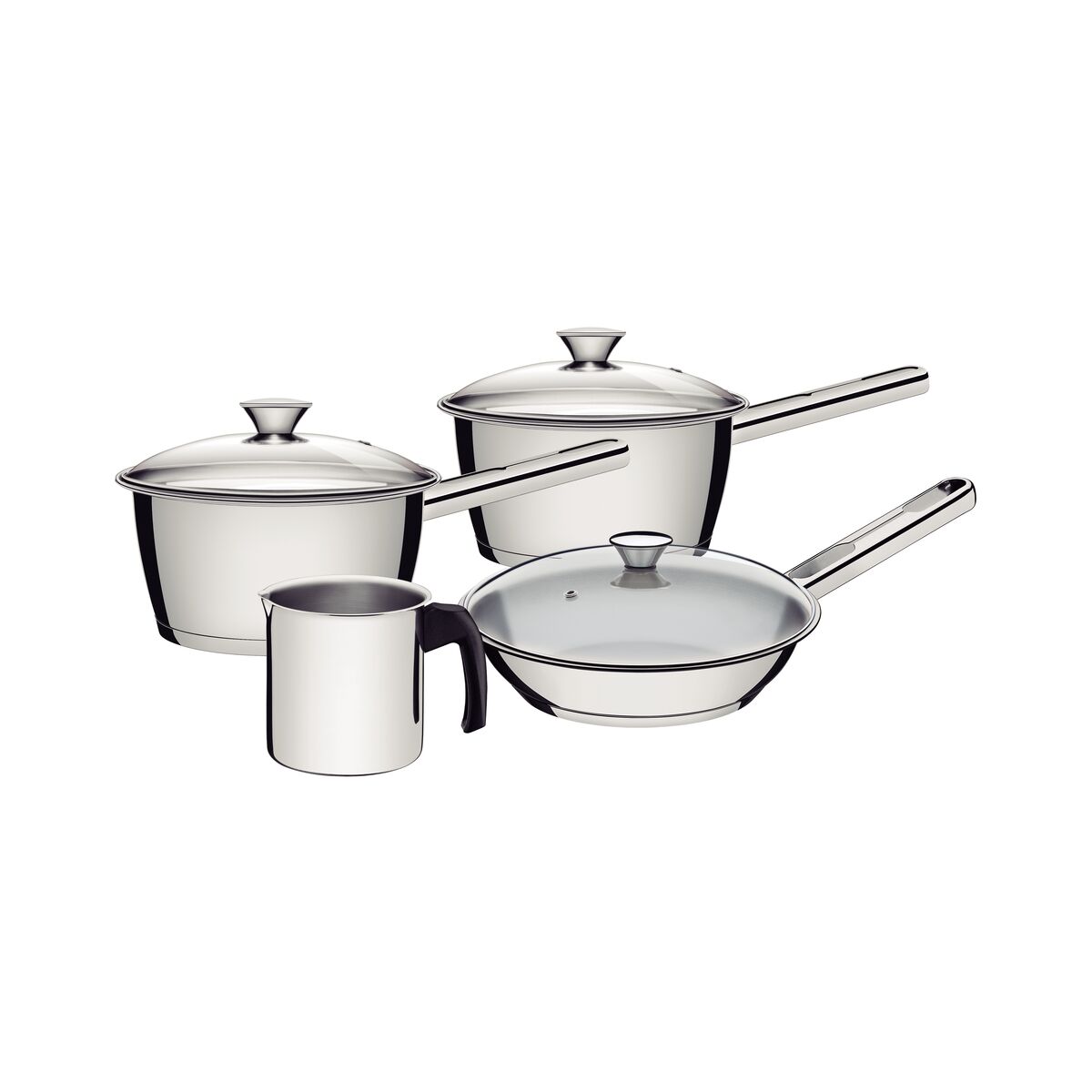 Tenha produtos práticos e diferenciados na sua cozinha. O Jogo de Panelas Tramontina Allegra em Aço Inox com Fundo Triplo 4 Peças facilita seu dia-a-dia e ainda embeleza sua cozinha. São 5 peças com design moderno que dá um toque cheio de estilo ao ambiente. Elas ainda apresentam tecnologia de fundo triplo (aço inox + alumínio + aço inox), distribuindo melhor o calor, proporcionando um cozimento mais rápido e uniforme. E o melhor, economizando mais energia! São totalmente produzidas em aço inox, material que atesta alta durabilidade e bom gosto. Acompanham tampa com saída de vapor e são ainda muito fáceis de limpar. Podendo ser lavadas diariamente na máquina de lavar louças. Elas ainda impressionam pela versatilidade, podendo ser usadas em diferentes tipos de fogões.